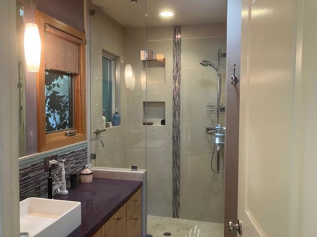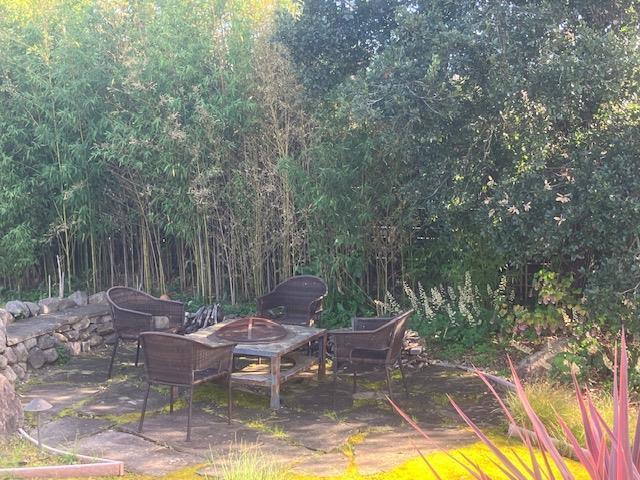 Tucked away at the end of a cul-de-sac his beautiful 3 bedroom, 2 bath home and office space boasts 1,708 sq ft of well-designed living space. The kitchen is a culinary delight, featuring a prep sink, electric cooktop, built-in oven, self-cleaning oven, and concrete countertops. Amenities include a dishwasher, microwave, exhaust fan, garbage disposal, and spacious refrigerator. The home offers hardwood and stone flooring throughout, adding to its elegant appeal. Relax by the cozy fireplace in the living area, perfect for chilly evenings. The primary suite includes a retreat area and an updated bath with a stall shower, and stone-tile finishes. Hall bathroom has a walk-in bathtub with jets. The laundry is conveniently located in the garage with gas hookups available. Additional features include central air conditioning with ceiling fans, central forced air-gas heating, and energy-efficient options like a tankless water heater and low-flow fixtures. The property sits within the Scotts Valley Unified School District and features a generous lot size of over 10,000 sq ft. A spacious 2-car garage completes the package. The large, fenced backyard with covered patio, decks and firepit area are perfect for a garden, play structure and year-round entertaining.