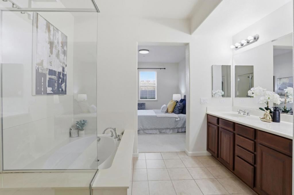 TOP SCHOOLS! Welcome to your new single story home in Milpitas with no steps, and move-in ready! Single story condo! Bottom floor, with easy access! from outside. One of the few units with 2 car separate enclosed garages, and an extra storage closet(approx, 4 X 8). This South-facing corner unit includes many windows to maximize light throughout each room. The home features 1421sf of living space with three bedrooms and two full baths with indoor laundry.Tasteful upgrades include manufactured hardwood floors, lush carpet, and tile floors. The kitchen includes stainless steel appliances with dishwasher, microwave and refrigerator with a breakfast bar and additional dining area. Multiple bedrooms with walk-in closets. The primary suite includes dual sinks, an oversized tub and stand alone shower. The oversized private patio area is perfect for enjoying evening sunsets, dining alfresco and getting some fresh air. This unit is easy access to the park, the pool, the gym and spa amenities.Enjoy excellent Milpitas schools. Close to Bart Station, VTA Light Rail and bus stations, major freeways and shopping centers. This is one you won't want to miss!