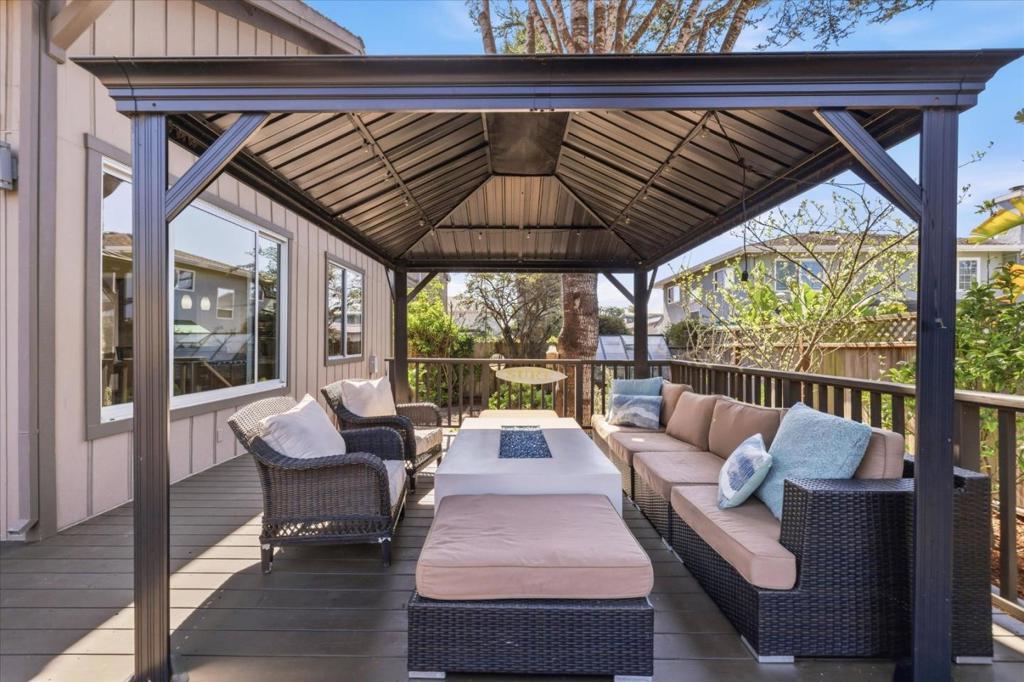 Perched in a desirable Aptos location, this custom home features an expansive 500 sq ft ocean view deck, creating an incredible setting for entertaining, relaxing, or enjoying coastal sunsets. Accessible from the office, this outdoor space offers seamless indoor-outdoor living and potential for future enclosure or studio conversion (buyer to verify). Inside, the home offers a bright and inviting open kitchen and living area filled with natural light from updated Western window systems. Hydronic heated ceilings and French oak floors provide year-round comfort, while the chefs kitchen includes a Sub-Zero refrigerator, double ovens, six-burner range, microwave, wine fridge, and pantry. The primary bedroom and bathroom are conveniently located on the main level, creating a comfortable and functional layout. A striking custom front door & fabricated steel awnings add to the homes thoughtful design updates. The private backyard offers a peaceful retreat with a greenhouse, hot tub, bocce court, & an additional entertaining deck complete with fire pit and gazebo. Walking distance to Rio del Mar Beach and Aptos Village, this home offers easy access to cafes, dining, shops, & coastal recreation, making it a wonderful opportunity to enjoy the relaxed Aptos beach lifestyle.