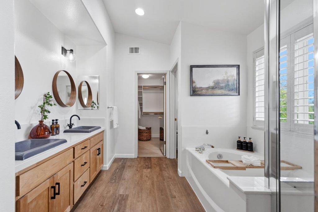 Rare newer construction in the heart of Cambrian with soaring vaulted ceilings and NO HOA! Beautifully remodeled 3BD/2.5BA single-family home offering approx. 1,634 sq ft of bright and inviting living space. The open floor plan is filled with natural light and features spacious living and dining areas ideal for both everyday living and entertaining. The gourmet kitchen showcases stainless steel appliances, gas range, and slab granite countertops. Additional highlights include new engineered flooring, recessed lighting, plantation shutters, interior panel doors, indoor laundry, and central heat & A/C. The spacious primary suite offers a relaxing retreat with soaking tub and large walk-in closet. Enjoy the private backyard with mature landscaping, perfect for outdoor dining and gatherings. Conveniently located near parks, Trader Joes, Costco, and major Silicon Valley employers including Netflix. Close to Steindorf STEAM School and The Harker School Middle School campus. Minutes to vibrant downtown Los Gatos, shopping, dining, and convenient commute routes. Located in a small and desirable community where only three homes have sold in the past five years, making this a rare opportunity.