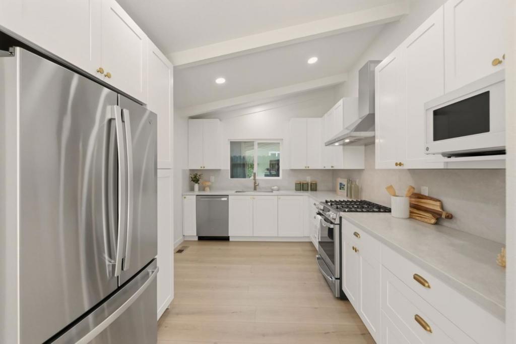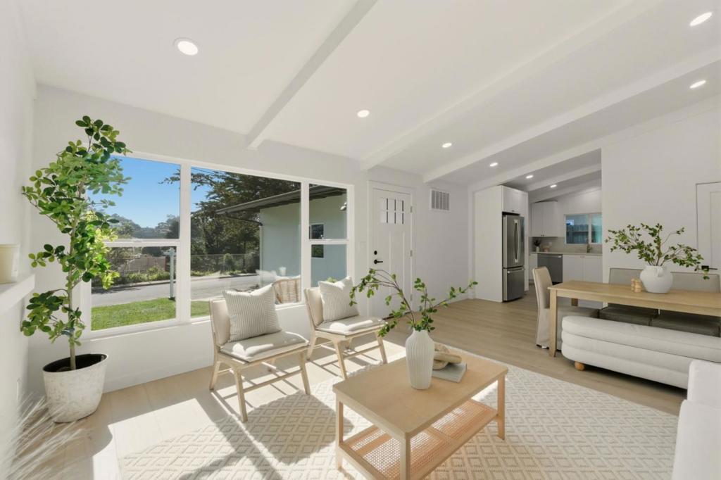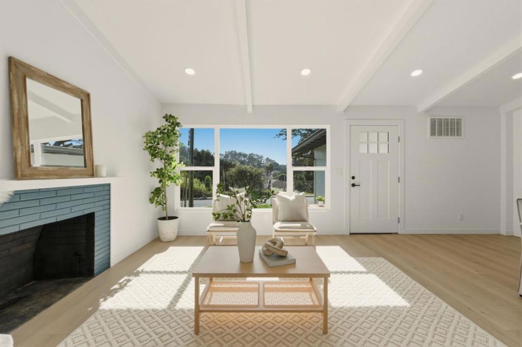 Welcome to this beautifully remodeled home nestled on a quiet street in the desirable coastal community of Pacifica. Thoughtfully designed throughout, the home offers bright, comfortable living spaces with vaulted beamed ceilings that add character and architectural charm. At the heart of the home is a stunning, newly remodeled kitchen perfectly designed with generous space for cooking, gathering, and entertaining. The spacious and inviting living room features a cozy fireplace and a large picture window that fills the space with natural light. Outside, the fully landscaped front and back yards create a welcoming setting perfect for relaxing or hosting guests. Ideally located with quick access to Pacifica's stunning beaches, scenic trails, local shops, and convenient commuting routes. The property also includes approved plans and permits for the addition of a second bathroom, offering excellent potential for future expansion if desired.