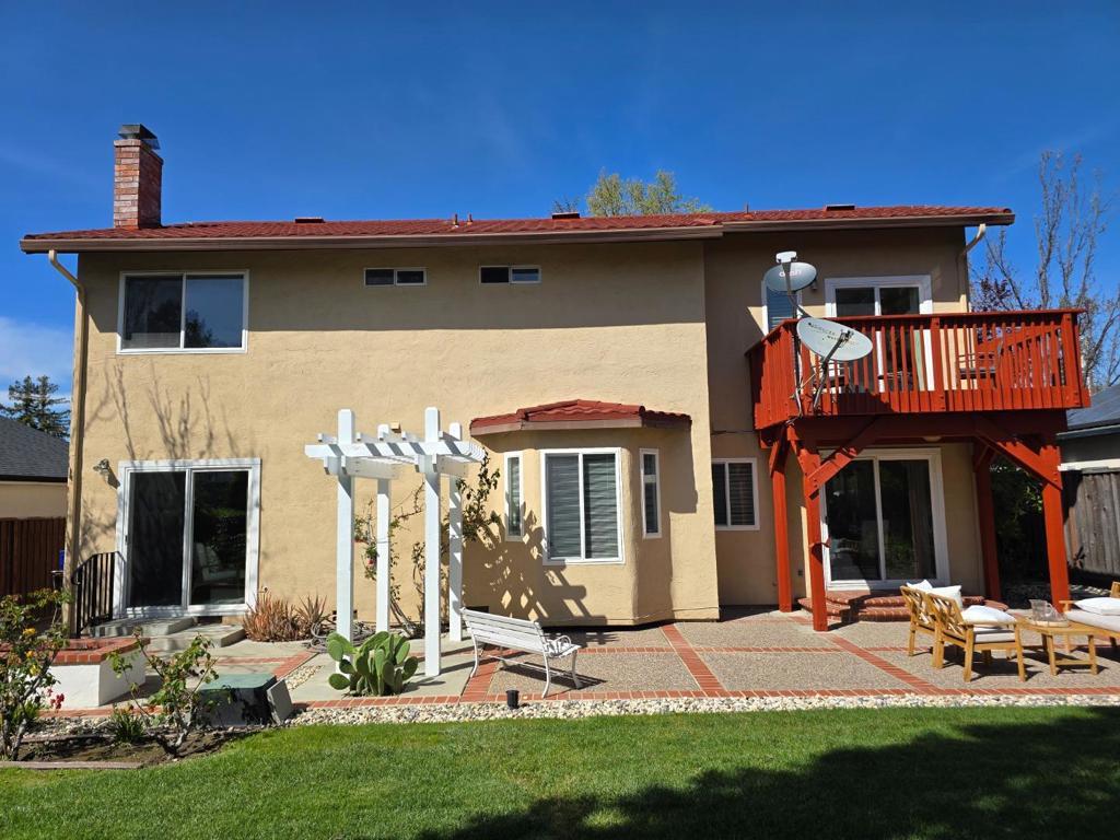Welcome to this inviting home featuring a stunning vaulted ceiling in the formal living room, a cozy fireplace, & updated flooring that adds warmth & character from the moment you enter. The dining area includes a convenient sliding glass door that opens to the backyard patio, creating an easy indoor-outdoor flow for entertaining. The kitchen boasts premium features, sleek countertops, appliances, ample cabinetry, & a breakfast bar. The spacious family room has a fireplace for cozy winter nights, while a glass sliding door opens to the backyards expansive patio, perfect for relaxation, entertainment, & gatherings. Upstairs, the en-suite primary bathroom impresses with a walk-in closet & sliding glass door to a private balcony. The second bedroom upstairs also has its own sliding glass door leading to a private balcony. Additional features include double-pane windows. A spacious ground-floor bedroom with a hall half-bath offers flexibility for guests, extended family, or a home office. There is also an electric chair lift between the floors for added convenience. Ideally located near the 880 & 680 freeways, Warm Springs Park, shopping centers, Warm Springs/South Fremont BART, & Tesla Fremont, this home offers comfort, functionality, & an excellent commuter-friendly location.