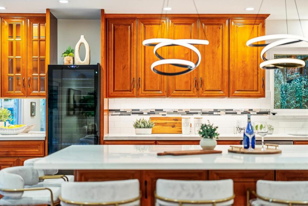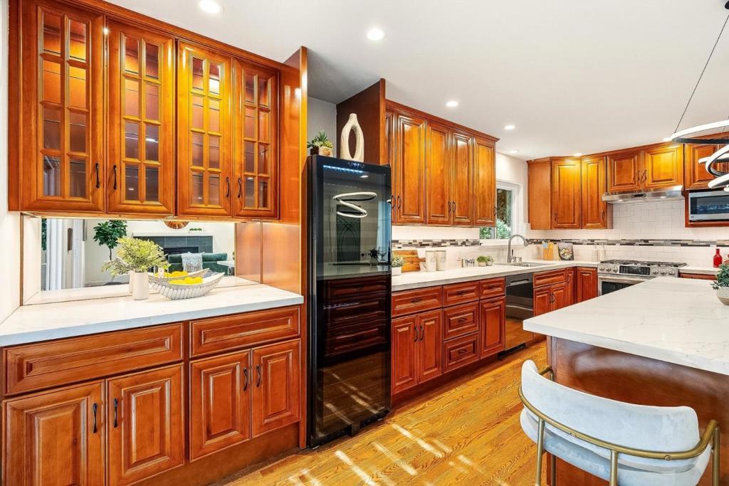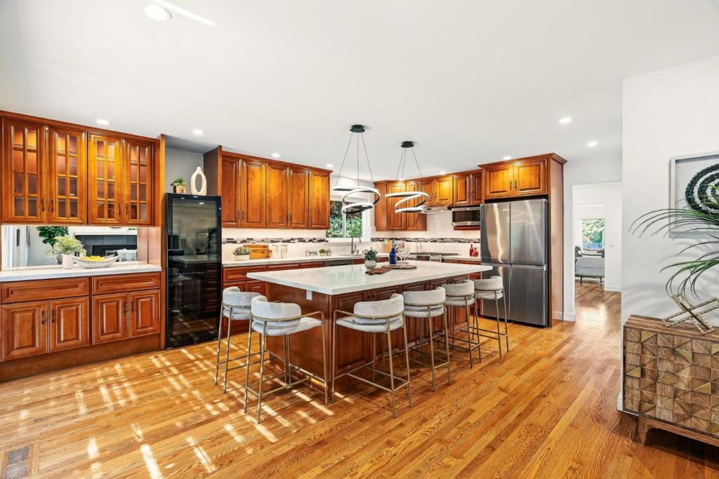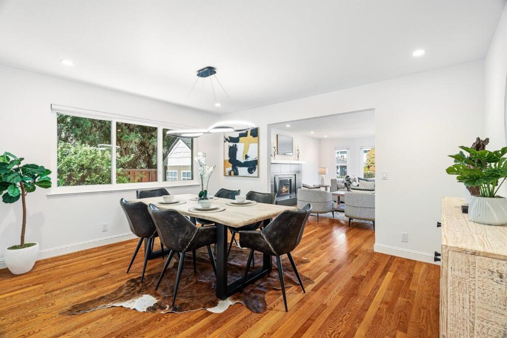 Extensively upgraded & thoughtfully reimagined since 2018, this exceptional 4BD/3BA residence blends timeless architectural character with refined modern comfort. Grand double doors open to light-filled interiors highlighted by solid red oak hardwood floors & designer lighting. The expansive living & formal dining rooms are anchored by two dramatic gas fireplaces. The spectacular chefs kitchen features a striking quartz island with seating for six, custom soft-close cabinetry, premium appliances, a wine refrigerator, & a stylish entertainers bar. The kitchen flows seamlessly into the spacious family room, creating a true great room with 2 sliding glass doors opening directly to the private backyard. A main-level bedroom adjacent to full bathroom offers extra flexibility. Upstairs, the oversized primary suite serves as a luxurious retreat with a spa-inspired bath featuring a soaking tub, expansive dual shower, custom cabinetry, & designer fixtures. The beautifully landscaped backyard features a redwood pergola, curated gardens, fountain, & custom hardscape. Major system upgrades include a newer roof, HVAC, dual-pane windows & doors, skylights, & smart home features. Ideally located near downtown Redwood City, major tech campuses, & key commuter routes.