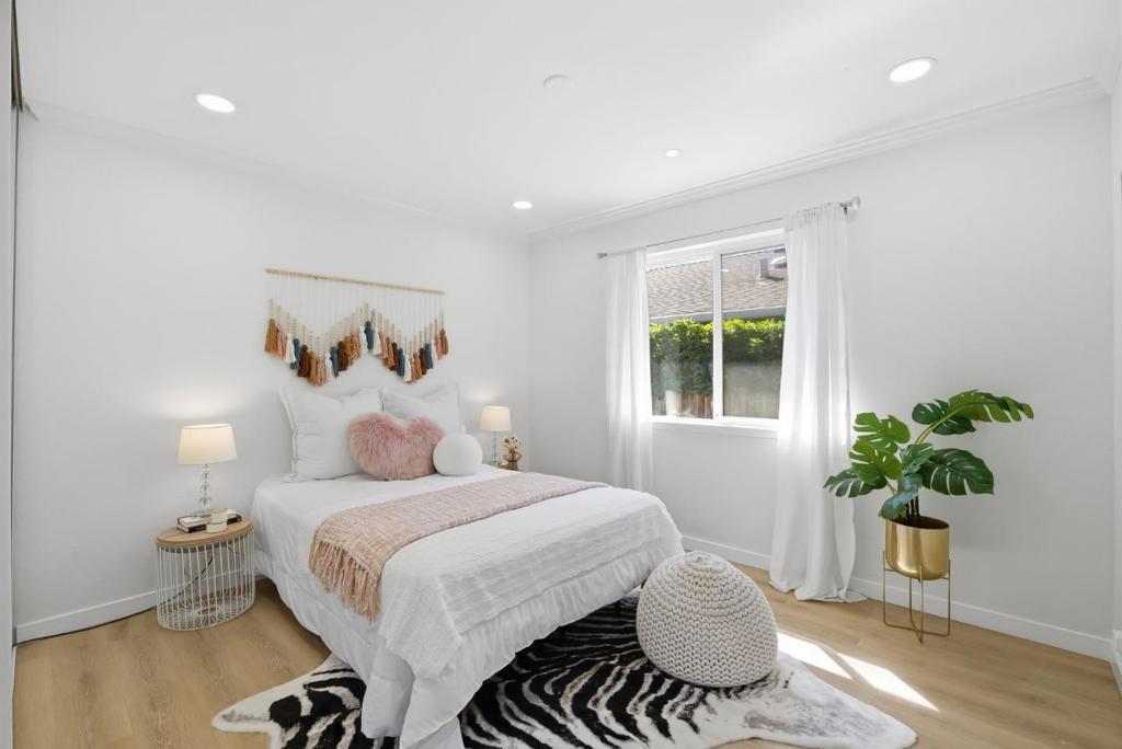 Single-story home located near the North San Jose and Milpitas border, newly remodeled with modern finishes and thoughtful design. The open floor plan features hardwood flooring, a custom TV wall, and a kitchen with granite peninsula, breakfast bar, and stainless steel smart appliances.Skylights and large windows provide abundant natural light, complemented by recessed lighting with app-controlled features. The primary suite includes a custom organized closet and updated vanity. Built-in wardrobes throughout the home provide ample storage. Each bedroom offers sliding door access to the backyard.The backyard features a spa, landscaped grounds with palm tree, and automated sprinkler system.Additional features include Ring security system and smart-controlled HVAC and lighting. Convenient location near BART, Highways 880, 237, and 101. Close to Trader Joe's, Great Mall, and various grocery and shopping options. Nearby schools include Zanker Elementary, Rancho Milpitas Middle, and Milpitas High School.