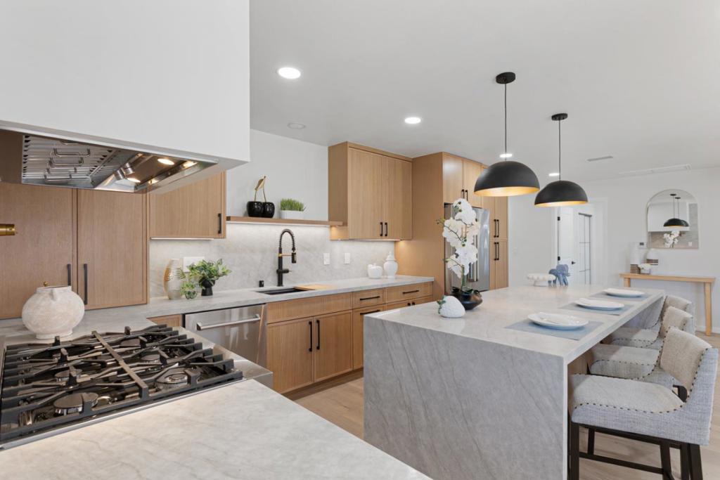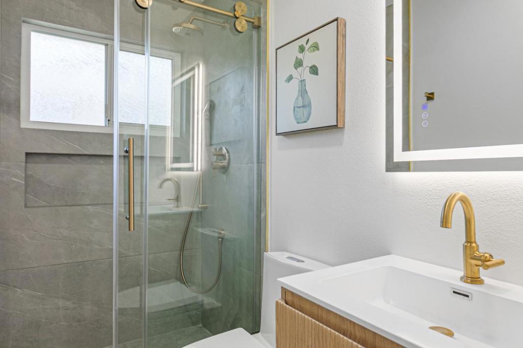 Fully renovated Campbell home featuring extensive upgrades inside and out. Highlights include new 9 wide plank flooring, fresh interior paint, recessed lighting throughout, and a beautifully remodeled kitchen with quartz countertops, waterfall island, custom cabinetry, and premium ZLINE appliances including a 36 dual fuel range. Major system improvements include brand-new plumbing (supply and drain lines), updated electrical with a 200A panel, new insulation, new drywall throughout the home and garage, new AC system, tankless water heater, and a new sewer line. The home also features a stylish living room fireplace with custom textured wall, updated bathrooms with Kohler / HansGrohe fixtures and designer lighting, new landscaping front and back, and a brand-new driveway. The upgraded garage offers epoxy flooring, built-in laundry, a 220V EV charger, and a custom pet wash station. Amazing location with easy access to major highways for convenient commuting.