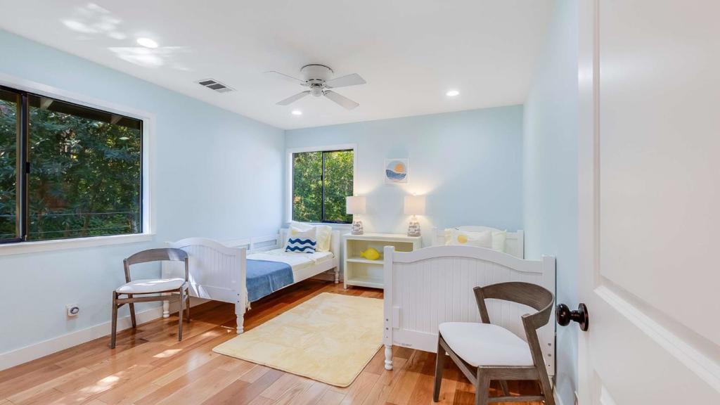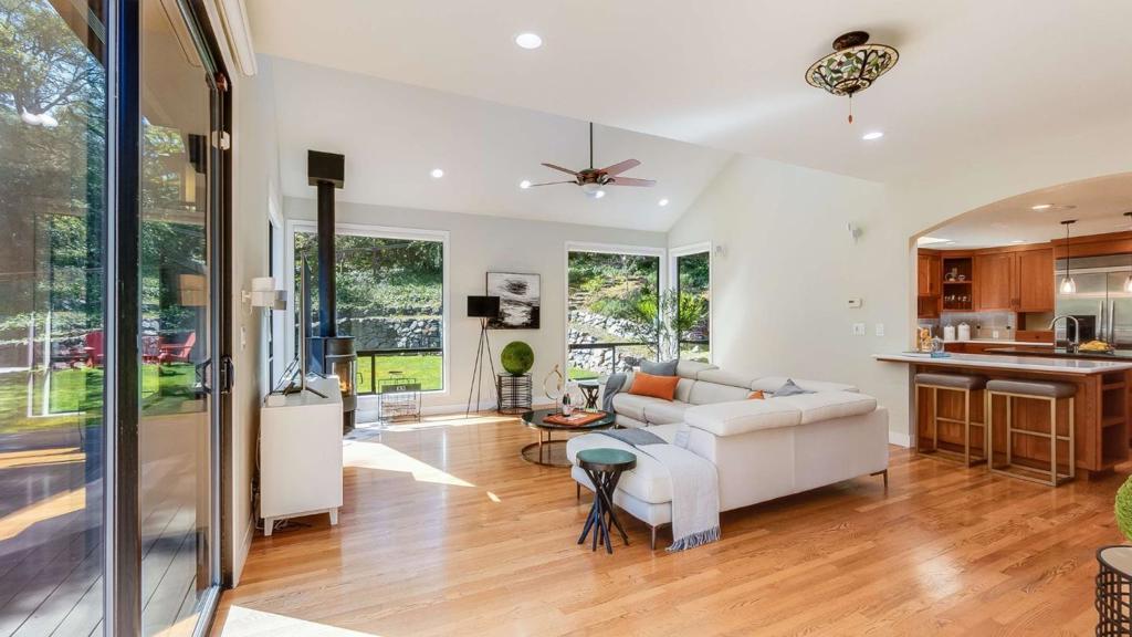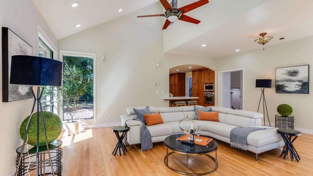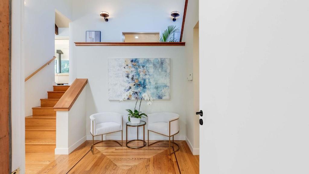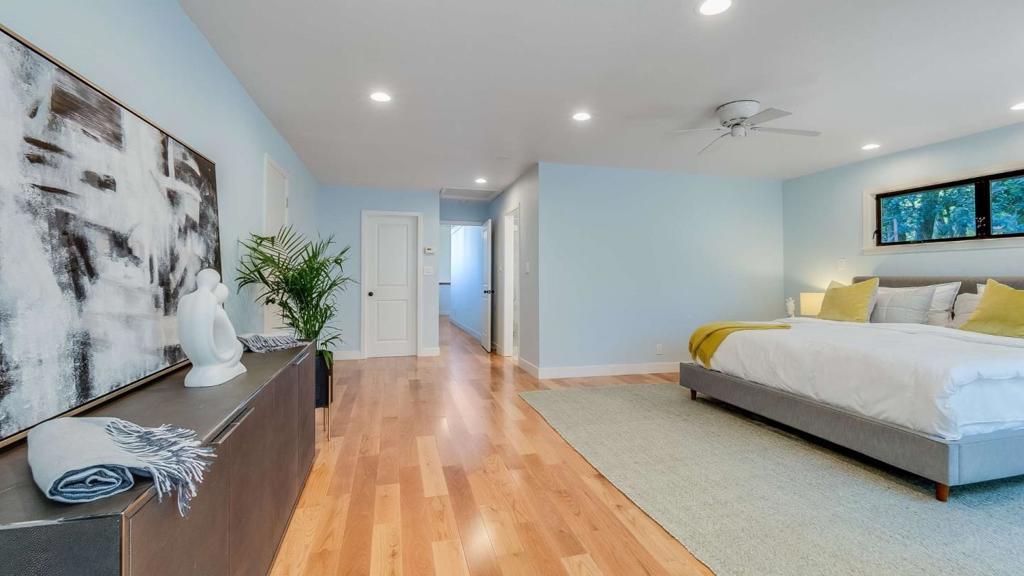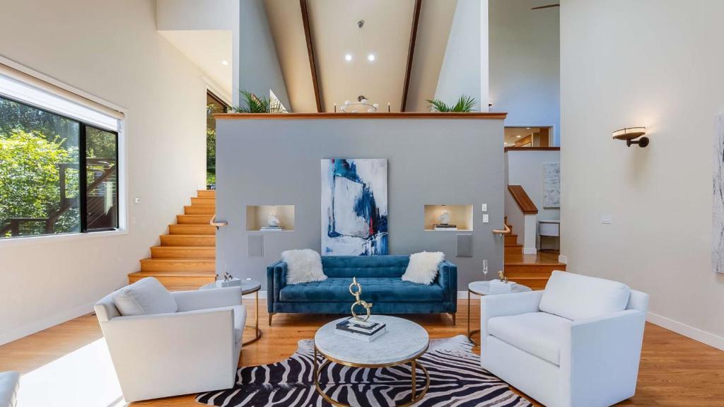 Private, resort-like mid-century modern retreat on over an acre, surrounded by lush greenery and mature trees. Beautifully remodeled with ~5,106 sq.ft., soaring ceilings, and floor-to-ceiling windows capturing tranquil views from every room. Flexible layout with 4 bedrooms, 3.5 baths, guest suite, office, and expansive decks overlooking a serene natural setting. Prime location near Stanford, VC HUB, and downtown Palo Alto. Buyer to verify square footage, lot size, permits, and schools to their satisfaction.
