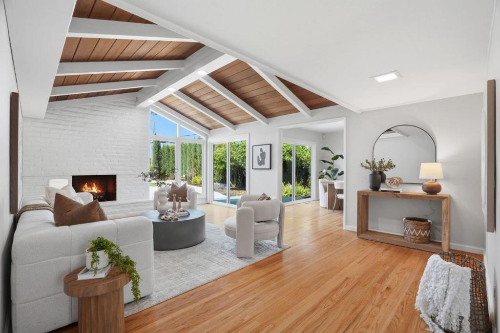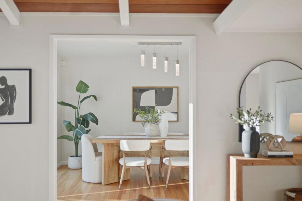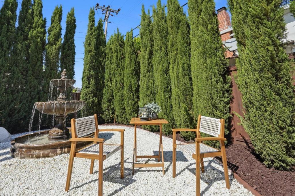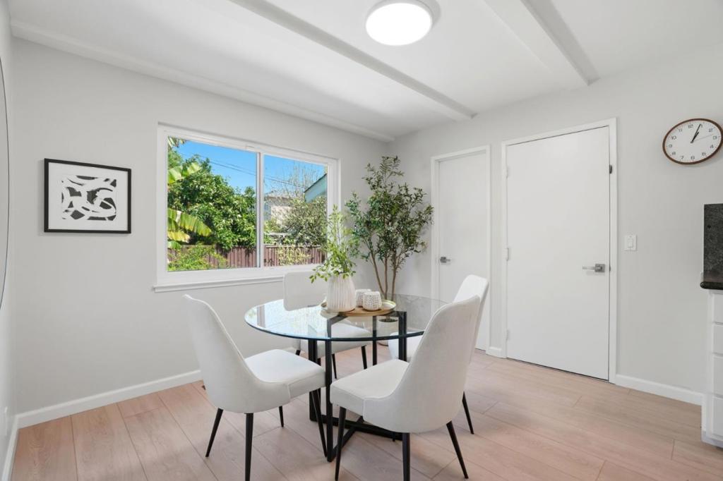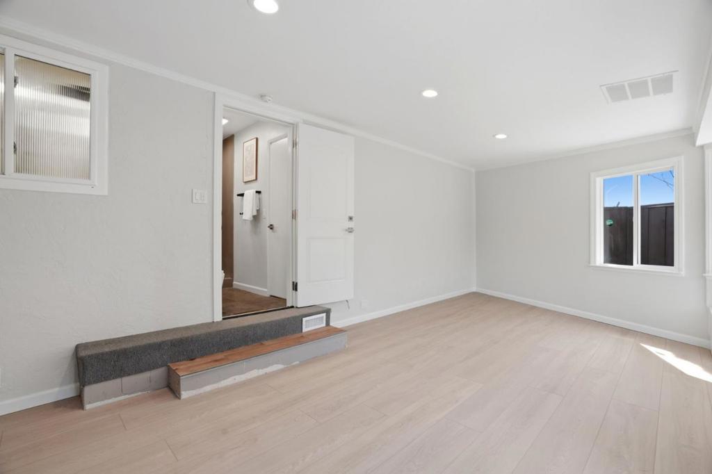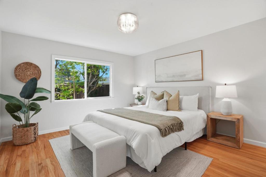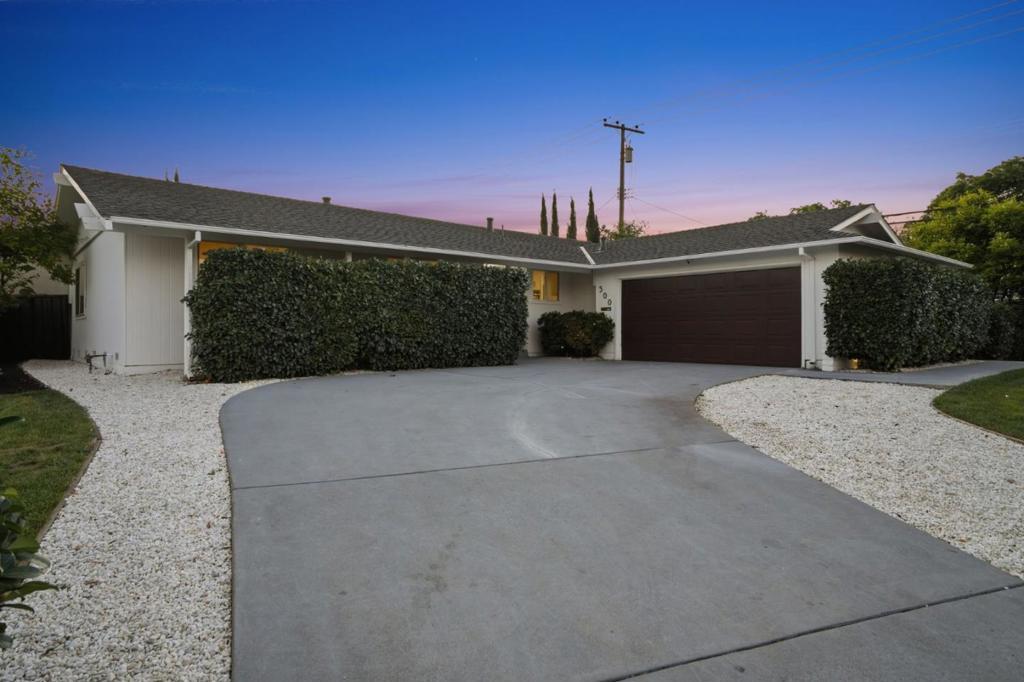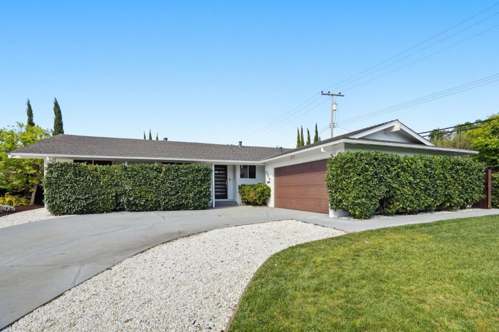 On a rare 1/4 acre+ and 200ft+ deep lot in one of Santa Claras premier neighborhoods, Forest Park, this thoroughly-remodeled, east-facing four bed/two bath single level home is bathed in natural light, thanks to an opulent vaulted living area and oversized windows. Beyond the staggeringly rare footprint, with sprawling and professionally-landscaped front, side, and rear yards, featuring mature fruit trees, a custom fountain, ample patio space, and room for expansion or ADU construction, a crescent driveway with room to turn around, and an impressive privacy border of low-maintenance evergreen trees, the extensive list of features and upgrades include updated central heat/air and hot water heater, two GC-remodeled bathrooms with full porcelain slab shower enclosures and designer-selected fixtures, a spacious kitchen with updated appliances (including a high-end Miele cooktop), a master suite with an attached *fully permitted* bonus room (not included in square footage), ideal for use as a comfortable home office, den, or family/play room, solid hardwood floors, in-ceiling LED lighting, and a finished garage with epoxy flooring. Convenient Santa Clara location near Millikin Elementary and major tech campuses including Apple, Nvidia, ServiceNow, Intel, AMD, and Palo Alto Networks.