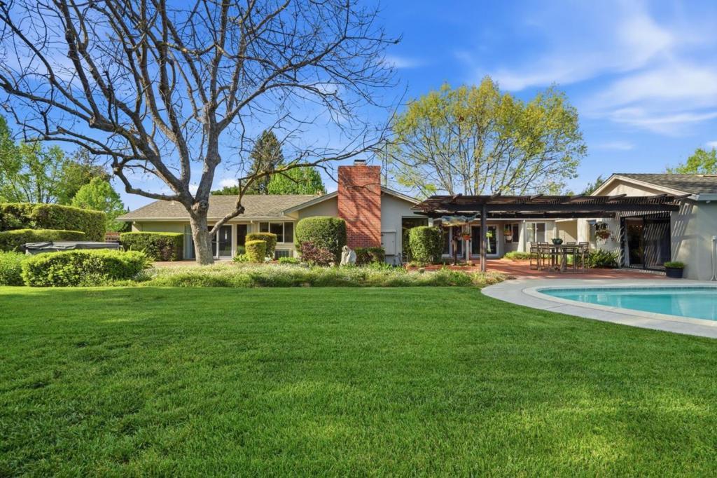 Dont miss this single level ranch style home in one of San Joses most coveted neighborhoods! The main home offers 4 bedrooms and 2 bathrooms with gleaming hardwood floors, central heating/AC, and natural light throughout. Enter to find the expansive living room with a wood burning fireplace, just steps away from the formal dining area. The eat-in kitchen features a built-in desk area and an abundance of cabinetry. Each bedroom is spacious, with the master suite boasting a walk-in closet and an attached bathroom with a stained glass window. The lot is an expansive ±15,104 sq.ft., featuring a pool with a diving board, a hot tub, a sprawling lawn, and a central patio area that is perfect for entertaining guests. As an added bonus, this property features a separate 400 sf ADU with its own bathroom, along with a spacious carport and workshop area. Don't miss this great location and lot that is to-die-for!