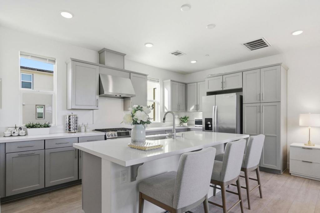 Built in 2018, this auspicious 2-bedroom, 2.5-bath townhome in the highly desirable Nova at The Vale offers modern design, functional comfort, and exceptional Silicon Valley accessibility. The bright open-concept main level features a sleek gourmet kitchen with quartz countertops, stainless steel appliances, and contemporary finishes. Dual primary suites provide ideal privacy and flexibility for guests, roommates, or work-from-home living. A private balcony adds inviting outdoor space, while the attached garage offers valuable additional storage space. Enjoy access to The Vales private park and clubhouse, with nearby Muwékma Park, Fair Oaks Park, Caltrain, and quick connections to Hwy 101, 237, Apple, Google, and other major tech campuses. Designed for todays connected lifestyle in one of Sunnyvales most sought-after communities.