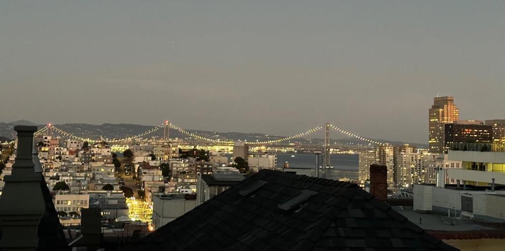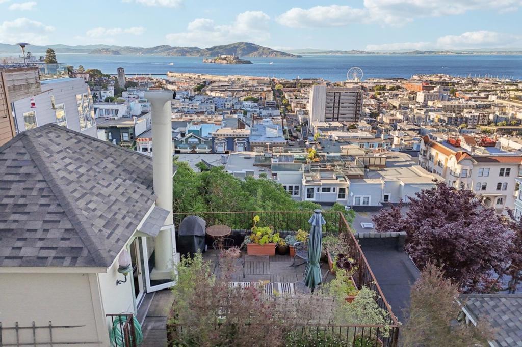 Perched near the crest of Russian Hill, 15-17 Macondray Lane offers captivating northeast views spanning North Beach, Telegraph Hill, and the San Francisco Bay, with Alcatraz and Angel Island as focal points. From the garden roof deck, enjoy a dramatic panorama stretching from the Bay Bridge to the Golden Gate. Set along Macondray Lane - an intimate, pedestrian-only enclave lush with mature landscaping and a tranquil waterfall - the home feels like a private retreat just moments above the energy of North Beach and Columbus Avenue. Inside, richly detailed wood paneling, tall windows, and a warm, curated palette create an atmosphere of understated elegance. The living room anchors the home with inviting scale and light, while adjoining spaces offer flexibility for dining, work, or relaxation. Bedrooms are peaceful and filled with soft natural light, oriented toward greenery. A rare offering combining iconic views, architectural character, and a uniquely serene setting in one of San Franciscos most sought-after neighborhoods. Own a piece of history!