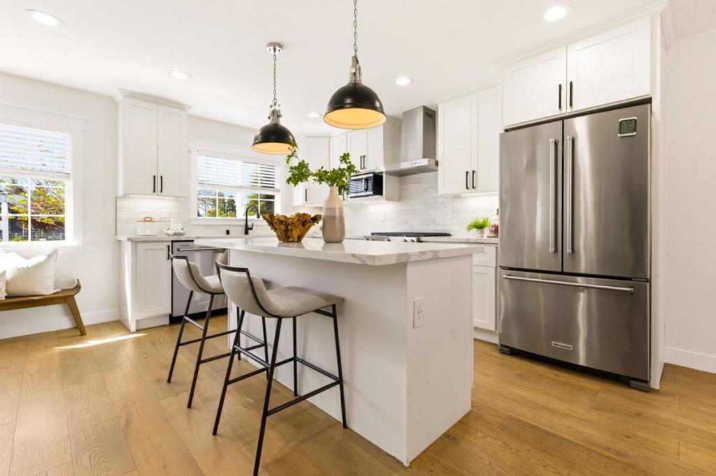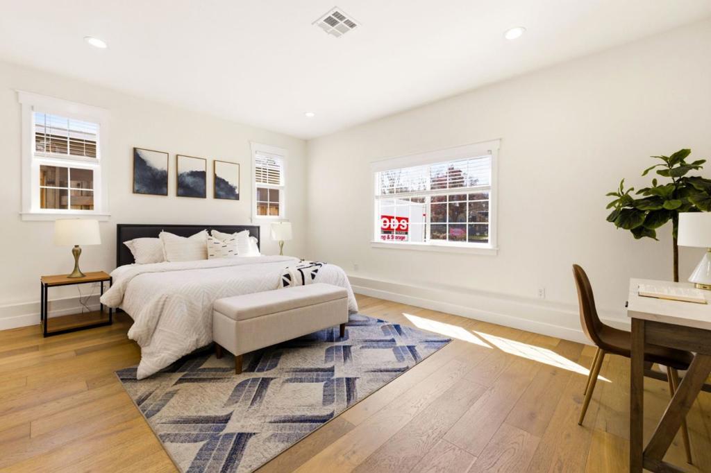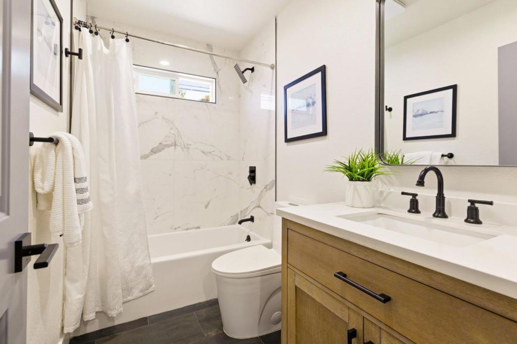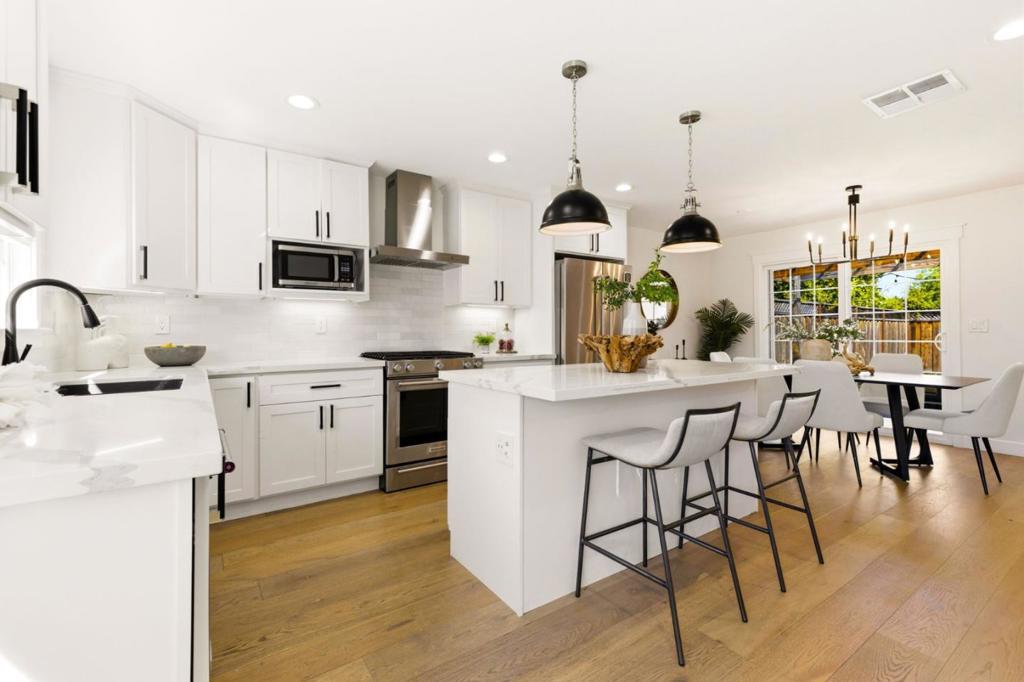 Nestled in the heart of Sunnyvales coveted 94085 zip code, this beautifully reimagined 4-bedroom, 3-bathroom modern farmhouse blends designer style with Silicon Valley convenience. Offering 1,630 square feet of open-concept living space, the home features wide-plank engineered hardwood floors, recessed lighting, and a chefs kitchen with a quartz island, custom cabinetry, and premium appliances. The thoughtfully designed floor plan is well suited for multigenerational living, with a private ensuite bedroom set apart from the others. The luxurious primary bath offers a freestanding soaking tub and backlit mirrors for a spa-like retreat. Additional upgrades include a newer HVAC system, tankless water heater, newer roof, and dual-pane windows. Outside, the low-maintenance backyard features a custom pergola and wired lighting, creating a peaceful setting for evening entertaining. Ideally located just steps from San Miguel Elementary and within walking distance of Columbia Parks recreational amenities, this home is a commuters dream with easy access to Highways 101, 237, and Lawrence Expressway. Whether commuting to nearby campuses such as Google, Apple, and Amazon or enjoying weekends on Murphy Avenue, this move-in-ready home offers convenient access to the best of Sunnyvale living.