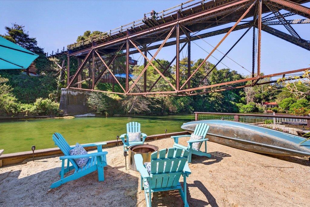 Stunning ocean and creek views framed by majestic cypress branches, the iconic Capitola Village Bridge and the Soquel Creek Trestle. The top floor-vista is topped by 365-degree roof-top deck views. Unit C has exclusive use of the deck and this is the only roof top deck as far as the eye can see. And no-one can see you either. One of three units that share a gated private creekside beach with fire pit and boat launch. If you are looking for a private castle, a family retreat, or a lucrative vacation rental this gem has it all. Quiet and tucked away, yet less than a block away from fine dining, the local favorite ice cream shop, and hot slices made to order, the quaint Capitola Village rivals any European Beach town. Fully-wired custom engineered smart home with Gigabit ethernet, top to bottom synchronized sound, and ReoLink cameras. One car garage plus one carport.