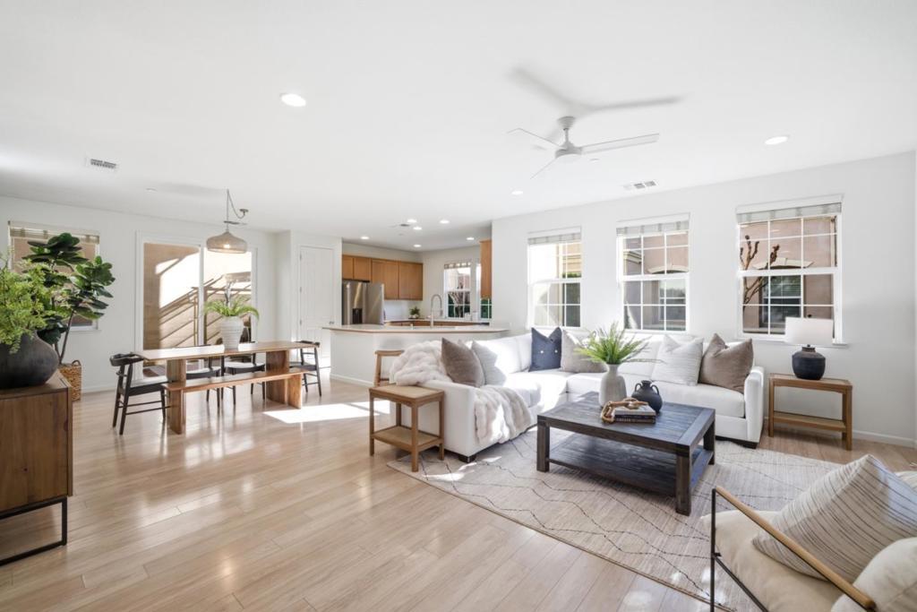 Welcome to 115 Lusitano Way, a bright and inviting corner home in one of Gilroys most desirable communities. Offering 4 bedrooms, 2.5 bathrooms, and approximately 2,071 sqft of living space, this thoughtfully designed residence features one of the community's most sought-after floorplans. The open great room is filled with natural light thanks to an abundance of windows, creating a warm and uplifting space perfect for everyday living and entertaining. A modern electric fireplace adds style and comfort to the family room, while ceiling fans in every bedroom and a water softener system provides everyday convenience. Situated on a premium corner location, the home brings in extra light and an open feel that makes it truly stand out. The community is located next to Gilroy Sports Park, with plans for a future ice rink managed by the San Jose Sharks, bringing exciting recreational opportunities and potential appreciation to the area. Don't miss this incredible opportunity.