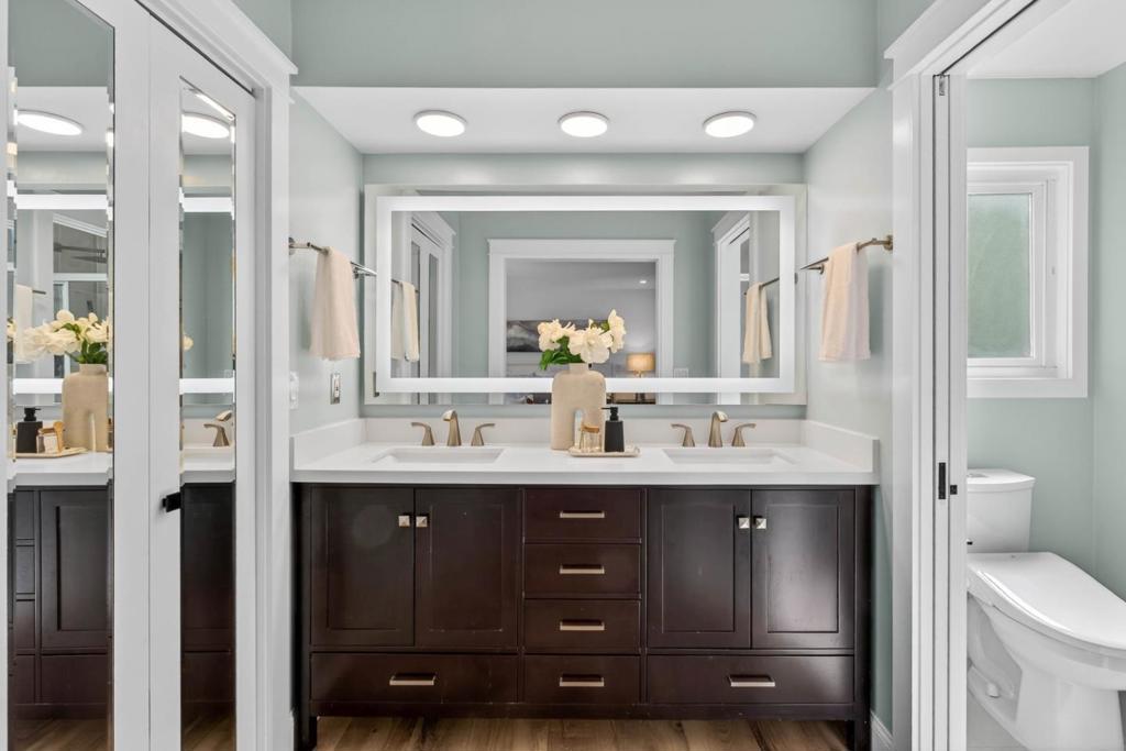 Walking distance to Monta Vista High School, beautifully move-in ready, in a secluded setting. Featuring elevated rear decks & a spacious front deck. This is a nicely remodeled home in Cupertino's most desirable neighborhoods. Served by Stevens Creek Elem., Kennedy Mid., & Monta Vista High. The property welcomes you with a covered front porch, brick stairway entry, & pergola-covered deck section, & landscaped yard Inside, the home offers a bright and open living & dining area, recessed lighting,& large picture windows. Sliding glass doors connect the indoor living areas to the outdoor decks. The family room features a fireplace with a floor-to-ceiling slab feature wall. The kitchen features a center island, wood cabinetry, tile flooring, pantry, breakfast nook, & breakfast bar. Appliances include a stainless steel refrigerator, cooktop with hood, built-in wall oven & microwave, dishwasher, garbage disposal, & multiple ovens, with gas hookups. Spacious bedrooms, hall closets, & s primary suite with walk-in closet & dual-sink vanity, bathrooms with showers over tubs, stall shower, & soaking tubs, a dedicated laundry room, & 2-car garage. Surrounded by nature yet close to top schools, parks, shopping, and major commute routes.