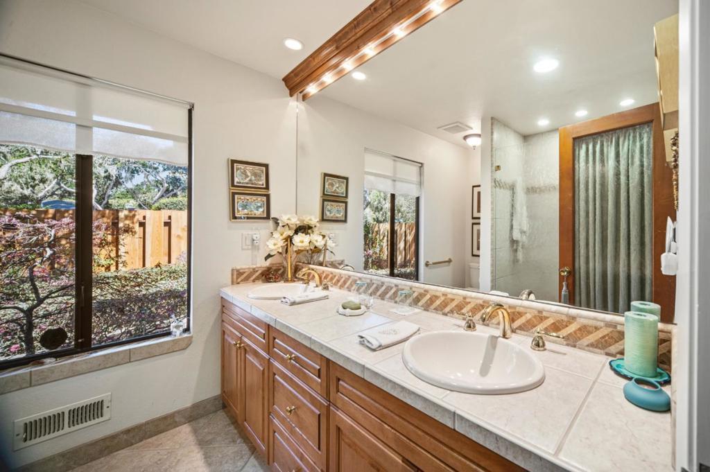 Very custom single level floor plan on a landscaped corner lot in the peaceful Country Club area of Pebble Beach. This is a meticulously maintained 2500 sq ft 3 bed, 2.5 bath home, plus oversized 2 car garage with a fenced rear area for the pooch! Tastefully remodeled throughout. Large airy rooms, formal dining room, formal living room with fireplace, many windows and high ceilings. Separate large den with built-ins adjacent to remodeled eat in kitchen and a laundry room. Primary bedroom is huge and has a retreat feel with lots of closets and an airy remodeled bath. Many windows and sliding doors through the home to access pretty grounds. Don't miss this tasteful home. (Most work suggested on inspections has been done! Meticulous!)