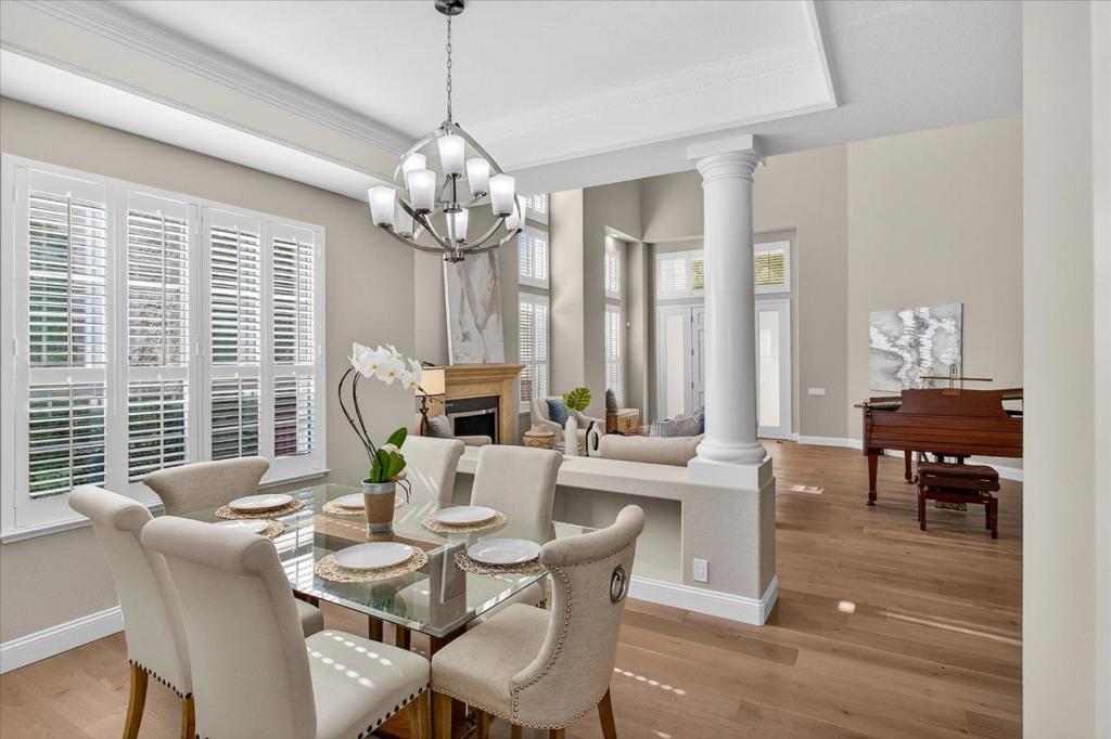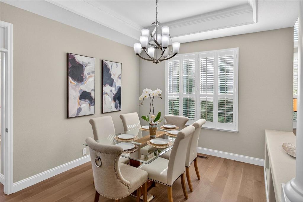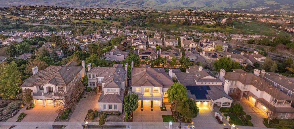 Nestled in the prestigious Silver Creek Valley Country Club, this 4-bedroom, 3.5-bath home offers 3,599 sq. ft. of timeless elegance and modern comfort. Step inside to soaring 20-foot ceilings, sunlit windows, and a dramatic grand staircase. The recently updated chefs kitchen features quartz and granite counters, a spacious island with a vegetable sink, top-tier appliances, and ample cabinetry. The cozy family room with a fireplace and breakfast nook flows seamlessly to a patio with sweeping views perfect for entertaining or relaxing. The first-floor private suite is ideal for guests or multigenerational living. Upstairs, the primary suite showcases breathtaking Mt. Hamilton views, a spa-like bath with a soaking tub, glass-enclosed shower, dual vanities, and a walk-in closet. Two additional bedrooms and a bonus room with balcony access complete the upper level. The low-maintenance backyard provides a tranquil retreat with stunning vistas. Conveniently located near the communities front gate and amenities, This home is also within the highly-rated Evergreen School District, celebrated for its exceptional academics and thriving community. Discover luxury living in the heart of Silicon Valley!