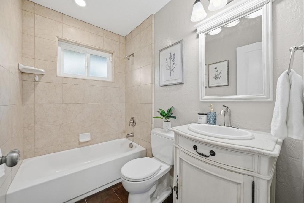 Welcome to this charming single-family home with 4 beds and 2 baths in sought-after Cupertino, located in a beautiful neighborhood. A large front yard warmly greets you. The gourmet kitchen features an island, luxury quartzite countertops, a beautiful backsplash, stainless steel appliances, and ample cabinetry, seamlessly connected to the dining area. The rear living room offers a cozy fireplace and a large sliding door opening to a spacious backyard for indoor-outdoor living. A hallway on the north side leads to the private area. The primary suite includes a spacious bedroom and an en-suite bathroom with a stall shower. Three additional bedrooms accommodate family and guests, while the hallway bathroom features a shower over tub. Recessed lighting runs throughout. A detached backyard structure with AC is ideal for a home office. Great location near parks, with easy access to dining, grocery, and shopping. Just 6 minutes to Apple Park, with convenient access to Hwy 280, 85, and Lawrence Expressway, and a short commute to major tech companies. Top-rated schools. This is an opportunity you do not want to miss!