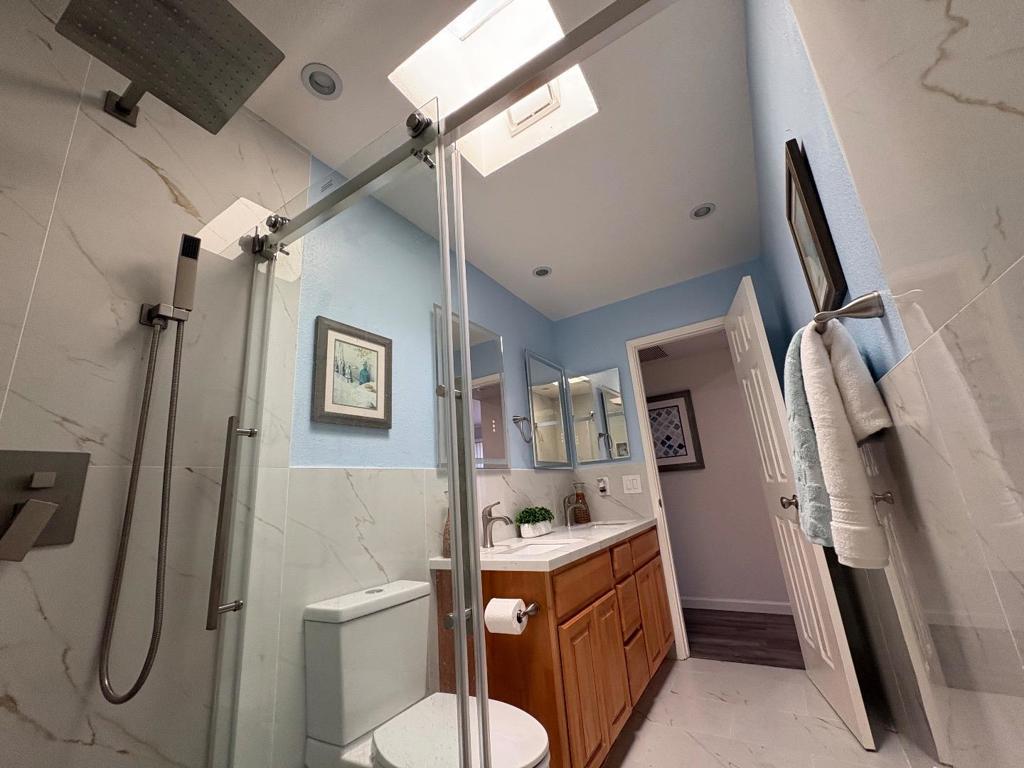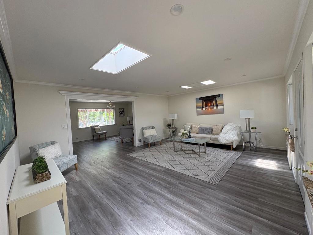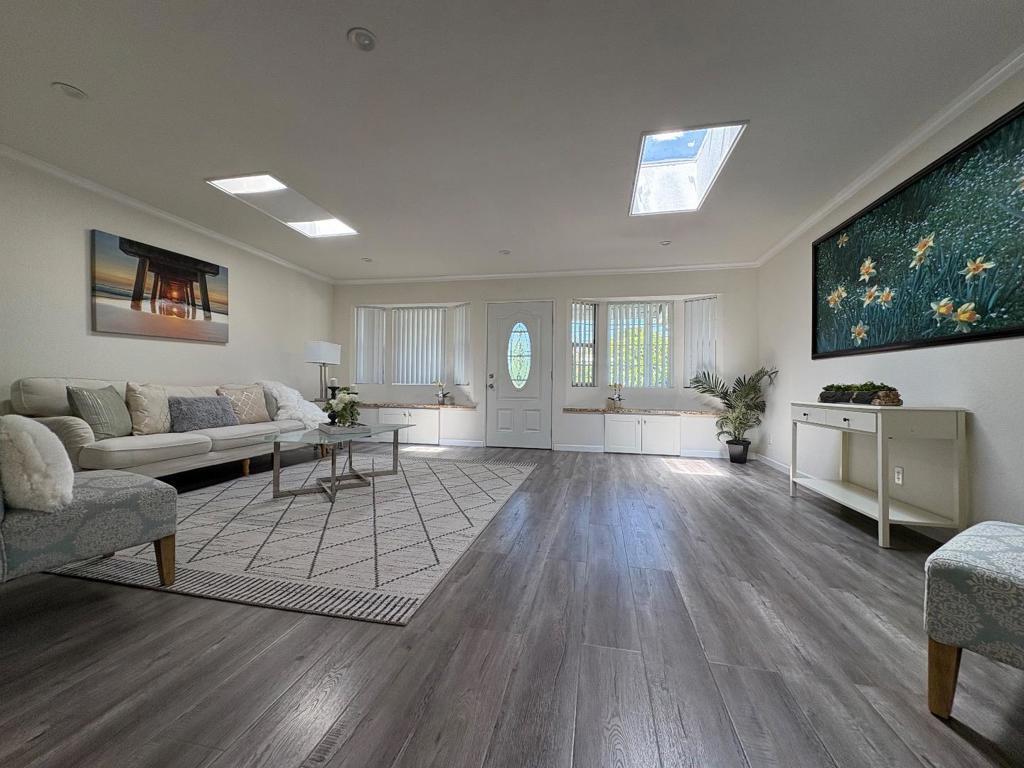 An exceptional location in West San Jose with modern Redesigned. Bright living room with crown molding, chandelier & front garden + mountain view. Living & family room-combo provides ample space for relaxation, while the living area is accentuated by skylights & indoor-outdoor access to brick patio under a wooden pergola. Tool shed in the backyard with many fruit trees & space for outdoor entertainment. Eat-in kitchen with thoughtfully designed kitchen featuring stainless steel appliances: a gas cooktop, a new air fryer oven toaster with multi-functions, granite countertops with cabinets-ample for storage, dishwasher, garbage disposal, microwave, pantry, and refrigerator, making it perfect for enthusiasm chef. Engineered hardwood floors, recessed lighting throughout main living areas, two bay windows & skylights which add abundance of natural light throughout. Two updated bathrooms with tile finishes, granite counters, touch screen light mirrors and a primary stall shower enriched by skylights.Double pane windows, energy efficient- attic insulation, cooper plumbing, new main door, ~7 year roof, security cameras & laundry in garage. Large lot with ADU/expansion potential or Extra room. Close to Hi-Tech hubs, shopping, restaurants, schools & parks. Easy Freeway Access!