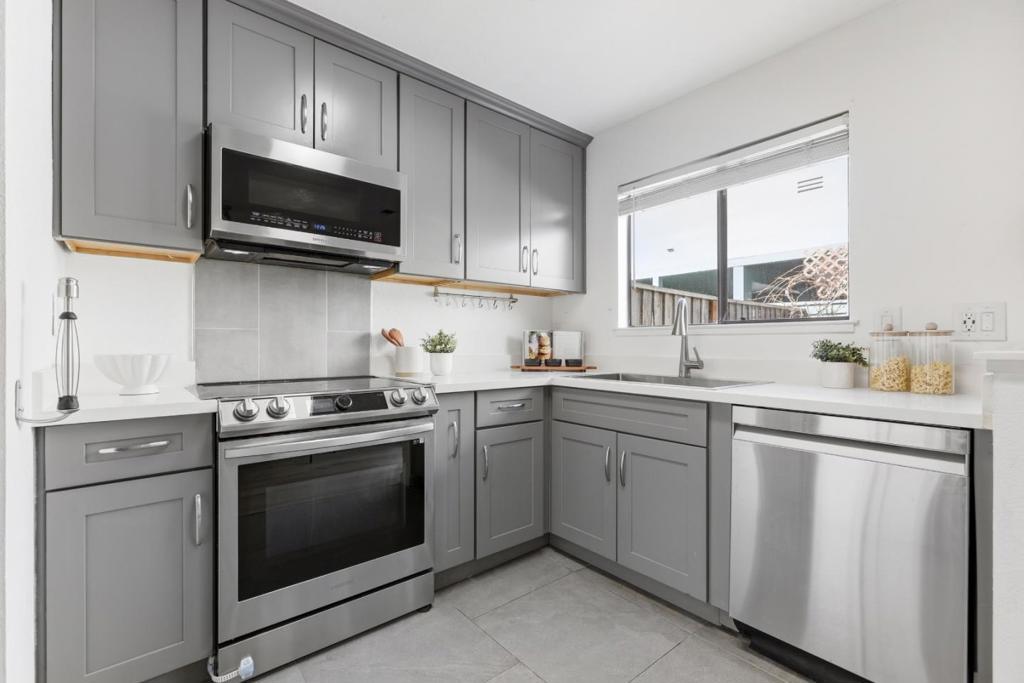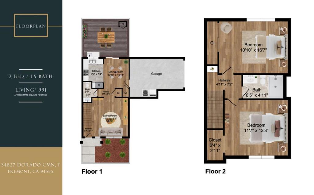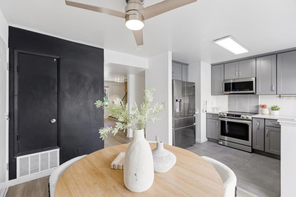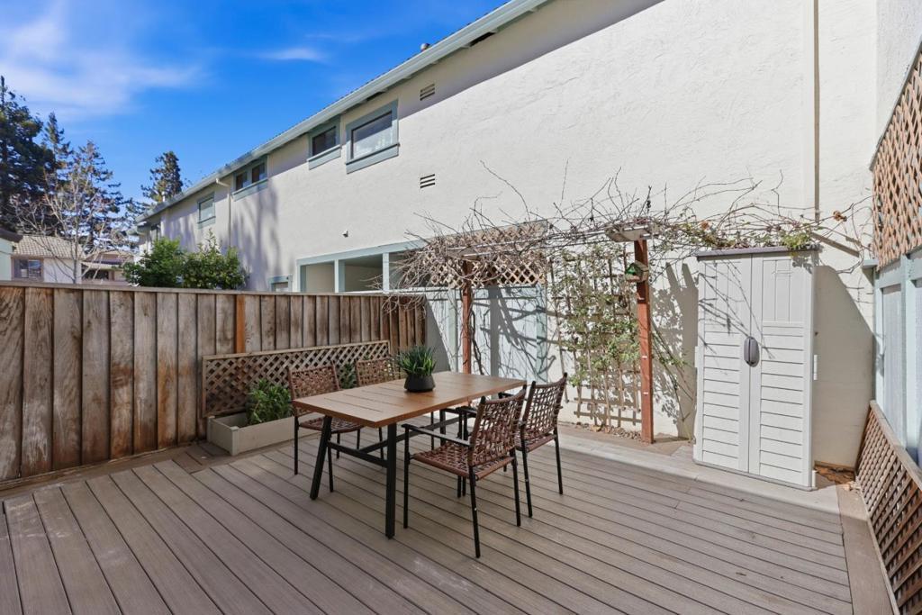 Welcome to this fully remodeled townhome in the heart of Ardenwood! This fully remodeled Ardenwood townhome is perfect for first-time buyers, featuring a bright open-concept layout anchored by a 2025 custom built-in bookshelf. A comprehensive 2021 renovation delivered a reimagined kitchen with modern cabinetry, new flooring, designer fixtures, and a total bathroom remodel. Upstairs hosts two spacious bedrooms, while the main level includes a guest powder room. The private outdoor oasis boasts a 2021 landscaped yard with a deck and grape trellis pergola. Practical upgrades include a 2022 water heater, security system, a 1-car garage, and 1 designated carport, with HOA fees covering water and garbage. Ideally located near Ranch 99, dining, and scenic trails at Coyote Hills, this home offers easy access to Hwy 84, I-880, and major tech hubs. Families will benefit from top-tier education at Forest Park Elementary and the 10/10 rated American High School.