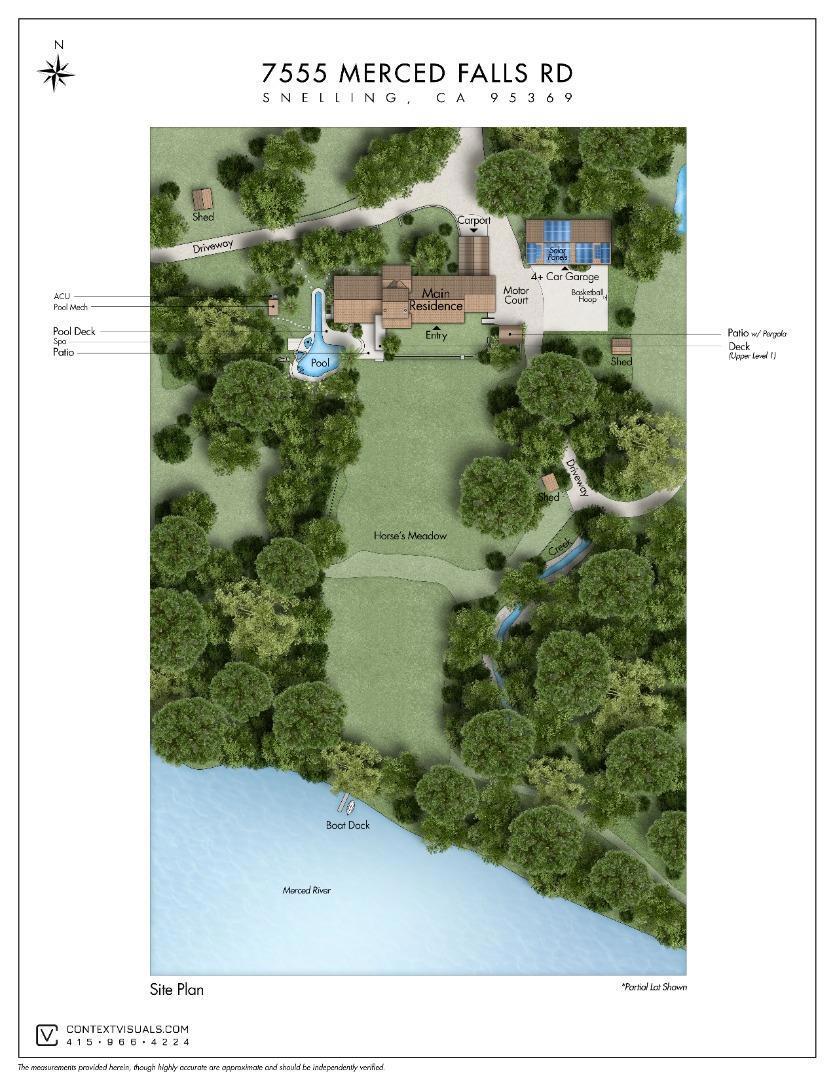 Nestled along the peaceful Merced River, this remarkable 150-acre estate embodies California's natural beauty and rural sophistication. Offering approximately 5 miles of navigable river with year-round fishing, the property provides a rare blend of privacy, recreation, and serenity perfect for boating, fishing, and waterfront living. At its heart, an impressive five-bedroom, three-bath main residence features spacious and inviting living areas, including two separate living rooms, a dedicated pool room, and a dining space designed for both everyday comfort and effortless entertaining. Outdoors, a sparkling swimming pool and jacuzzi are ideally situated to enjoy panoramic views of grazing horse pastures and the charming riverbank, while a private water system with dedicated storage ensures a dependable year-round supply of fresh drinking water. Set across six legal parcels, the property includes five dwellings three currently leased on a month-to-month basis and one vacant creating a rare multi-residence compound with immediate income potential and long-term flexibility. 7555 Merced Falls Road, twenty minutes from Merced, stands as a truly iconic offering where navigable water, productive land, and refined living come together in one extraordinary setting.