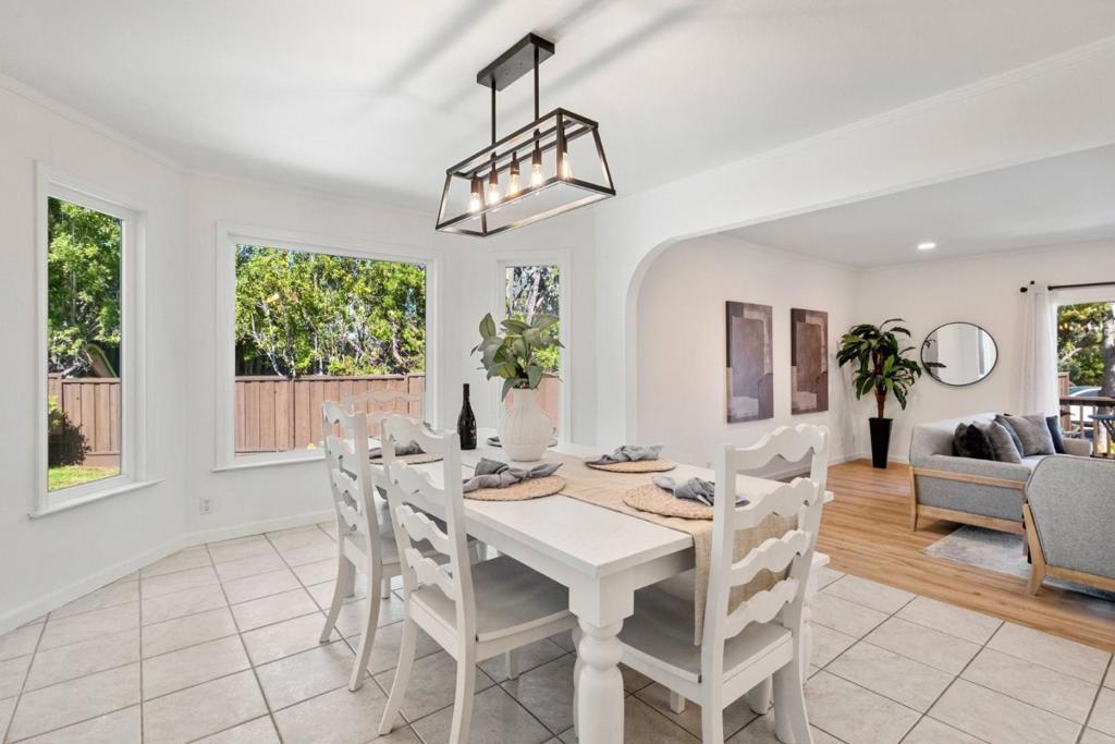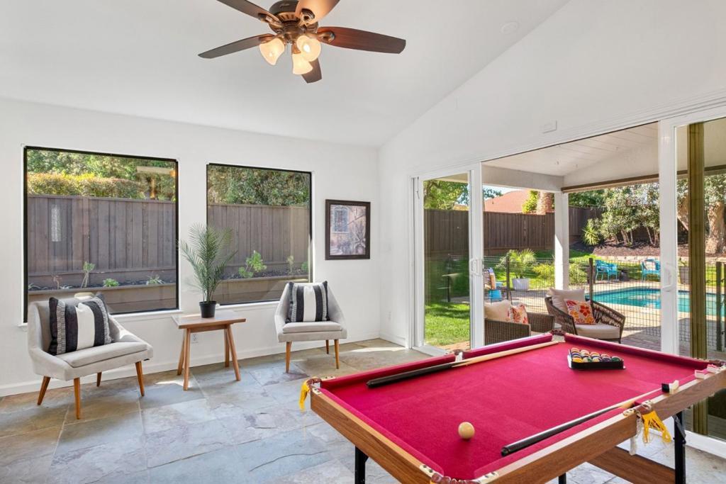 This thoughtfully designed 3,410 sq ft home in San Jose features six bedrooms and four bathrooms, perfect for families and guests. It includes a fully equipped kitchen and a formal dining room for entertaining, along with separate family rooms for relaxation. Don't miss your chance to own this stunning property. This home features tile and engineered-wood flooring for a smooth flow. A fireplace adds charm for cooler nights. Thoughtful amenities include skylights, a large walk-in closet, a wet bar, a pool room, and guest quarters, enhancing functionality and comfort. The game or pool room offers entertainment. Designed for comfort, it has central air conditioning and heating for year-round climate control. This exceptional property boasts a solar-heated pool and spa, perfect for relaxing and entertaining. A spacious two-car garage with convenient laundry hookups. Located within the highly sought-after San Jose Unified School District, renowned for its Blue Ribbon schools, this home combines comfort, convenience, and top-tier education. Discover style and convenience in San Jose, near Los Gatos, Quicksilver Park, Almaden Lake, Almaden Meadows Park, Rancho San Vicente Park, and Almaden Golf & Country Club.