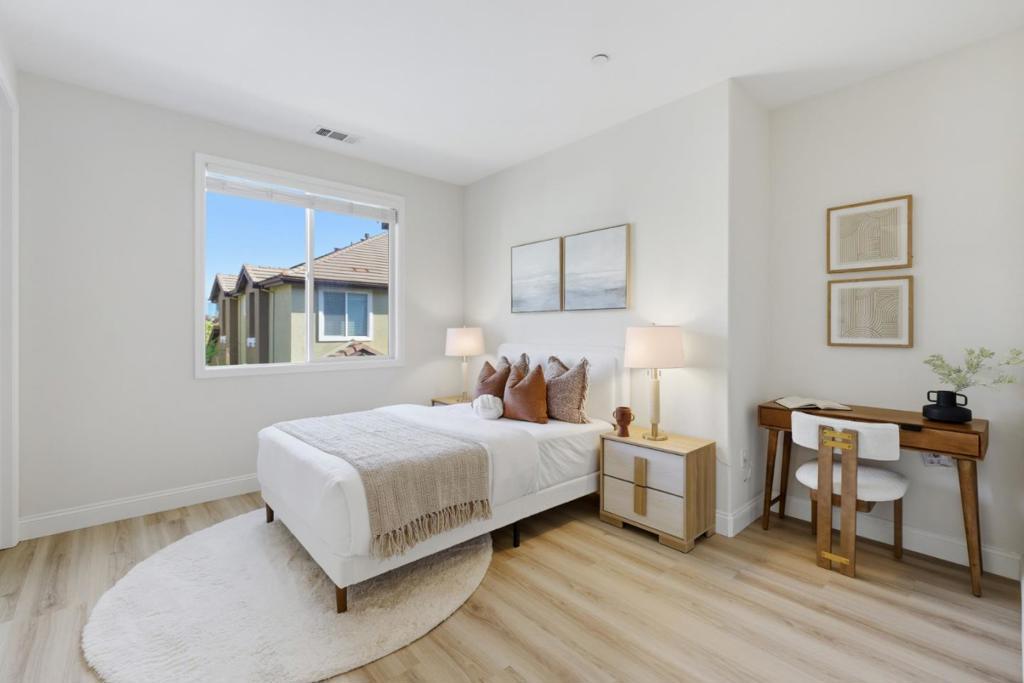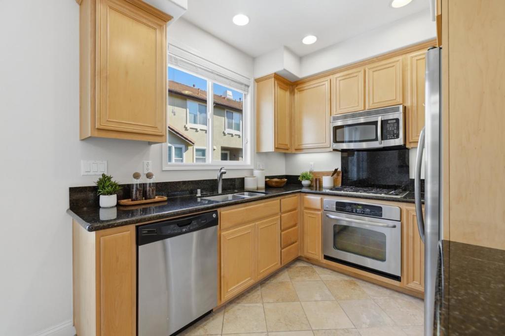 Bright and modern 2-bedroom, 2.5-bath Townhome in the sought-after Verona community by Toll Brothers, tucked away in a quiet corner of Sunnyvale. With a desirable North-South orientation, the home is filled with natural light, complemented by soaring ceilings and new luxury vinyl flooring throughout. A flexible mid-level space is ideal for a home office, family room, or dining area. The upgraded kitchen features granite countertops, stainless steel appliances, a breakfast bar, and access to a private balcony, along with a separate patio for outdoor living. Upstairs offers TWO ensuite bedrooms, each with walk-in closet and full bathroom, providing both comfort and privacy. Additional highlights include central AC, a 2-car garage with a 240V outlet for EV charging, and ample storage. Ideally located near parks and greenbelts, and just a short walk to Seven Seas Park, with easy access to Highways 101 and 237 and close to major employers such as Google, Amazon, and Meta. A perfect balance of modern living, community, and location truly one to see!