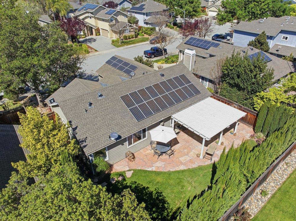 Rare single-story model in the desirable Central Park community, located in the heart of Morgan Hill. This home features a large kitchen with quartz countertops, stainless steel appliances, gas range, and recessed lighting. Rich hardwood floors, accent paint, and high vaulted ceilings create a warm and inviting atmosphere, complemented by built-in cabinetry for a TV and entertainment system. Energy-efficient upgrades include a tankless water heater and owned solar. Enjoy low-maintenance living with HOA-maintained front landscaping, along with access to fantastic community amenities including a pool, spa, park, basketball, and tennis courts just a short 2-minute walk away. The quiet, friendly neighborhood offers a true sense of community, and a large fenced grassy area is perfect for dogs, outdoor activities, and socializing. The backyard is ideal for entertaining, making this a wonderful place to call home.