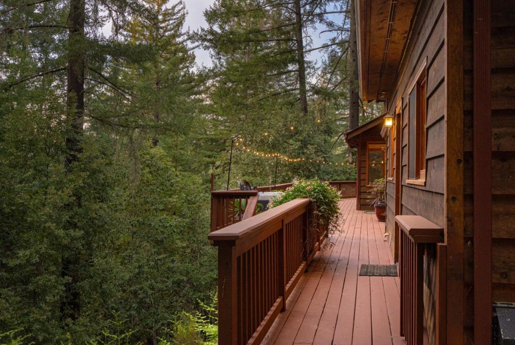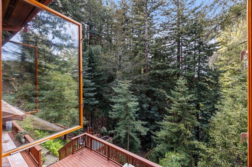 Set among the redwoods in the Glenwood Acres community, this knoll-top property offers privacy, natural surroundings, and a central location between Silicon Valley and Santa Cruz. A long private driveway leads to a peaceful setting with seamless indoor-outdoor living, including a wrap-around deck, hot tub, and a private path to your own redwood grove. Inside, the home is bright and inviting with expansive windows, hardwood floors, and natural wood finishes throughout. The kitchen opens to the family room with a wood-burning fireplace, while a separate living room features a gas fireplace, windows on three sides, and French doors leading to the deck. Upstairs includes three bedrooms, highlighted by a primary suite with vaulted ceilings, skylight, private balcony, and a bathroom with radiant heated floors, soaking tub, and separate shower. A ground-floor office or den adds flexibility, along with a two-car attached garage. Built in 2000 with a helical pier foundation. Close to Scotts Valley schools, local amenities, and Hwy 17.