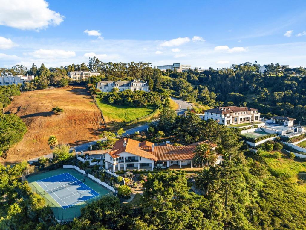 Panoramic Bay views take center stage in this extraordinary estate, w/ sweeping vistas from the SF skyline to the San Mateo Bridge & across the East Bay hills. Set on ~3.4 acres in prestigious Tobin Clark Estate, this property offers rare privacy, scale & presence. Built in 1981 by the areas original developer as his personal residence, it sits on one of the communitys most desirable sites. Spanning ~7,000 sq.ft., the home features grand living spaces, soaring ceilings & expansive windows framing the views throughout. A dramatic foyer w/ curved staircase leads to elegant living & entertaining areas. Spacious family rm w/ bar opens seamlessly to the grounds, while the kitchen w/ breakfast area captures natural light & scenic outlooks. Multiple bedroom suites + dedicated office, incl. a luxurious primary suite w/ fireplace, dual baths, dual walk-in closets & private view balcony. Resort-style grounds feature pool, full-size tennis court, lawns & covered patios. Gated circular drive w/ porte cochère leads to a 3-car garage, completing this rare Hillsborough legacy estate near Silicon Valley & SF.