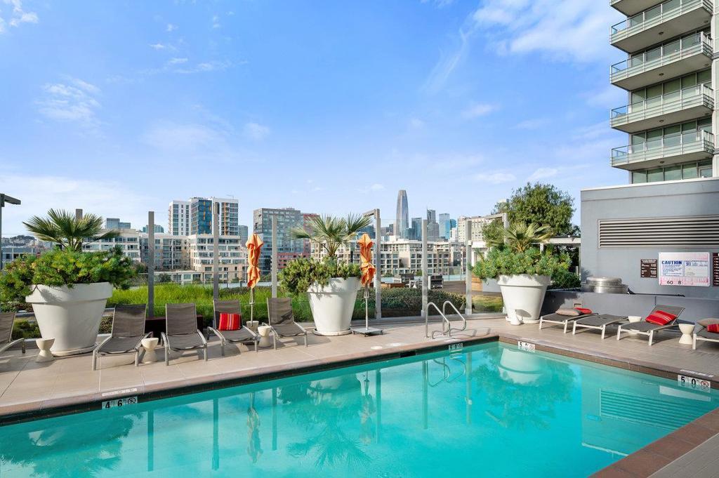 Elevated living in San Francisco's vibrant Mission Bay! The Arden, where modern luxury meets resort-style amenities, stunning waterfront location. 24hr attended lobby provides comfort and security, enjoy boutique-inspired lounges, expansive rooftop retreat, 75-foot lap pool, lush landscaped gardens, breathtaking views of McCovey Cove and the city skyline. The community offers BBQ grilling stations, outdoor dining areas, a social lounge with billiards, and a fully equipped fitness center tailored to an active lifestyle. Just outside your door, tree-lined streets lead to Mission Bay parks, convenient transit options including Caltrain and Muni, premier shopping, and two world-class stadiums hosting top-tier sports and entertainment events. This northwest-facing 2bd 2ba residence offers a thoughtfully designed open floor plan with downtown and cove views. A spacious private patio seamlessly extends the living space, creating an ideal setting for indoor-outdoor living. The gourmet kitchen is a chef's dream, appointed with Caesarstone countertops, Grohe fixtures, and premium Thermador appliances. Interior upgrades include recessed lighting throughout, custom closet systems, handcrafted window coverings, and elegant wood floors, adding warmth & sophistication to this exceptional home.