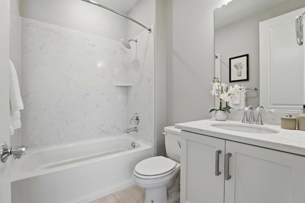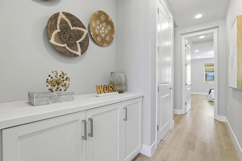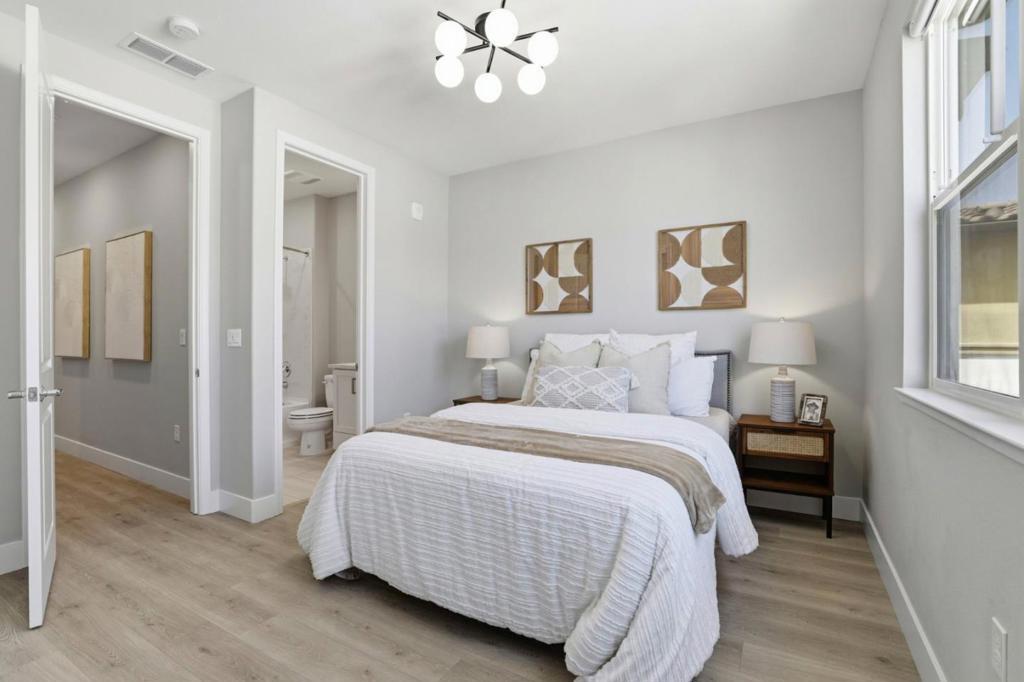 Location! Location! Location! Stunning 6-year-new contemporary townhome by Taylor Morrison with over $32K in premium builder upgrades. The functional great room layout features a spacious living area, gourmet kitchen with oversized island, bar seating, updated quartz countertops, gas stove, and open-concept dining. Modern hard-surface flooring flows throughout the entire home (stairs excepted), offering a sleek, low-maintenance aesthetic. The cozy primary suite includes a walk-in closet and dual-sink bathroom with ample storage. The second bedroom has its own en-suite ideal for guests. Enjoy energy efficiency with dual-zone thermostats, a whole-house water softening system and a tankless water heater, plus abundant natural light throughout. Attached 2-car garage with epoxy flooring. Exceptional craftsmanship and high-end finishes throughout. Unbeatable location - walking distance to restaurants and shops, minutes from Downtown Sunnyvale, and close to major tech employers like Apple, Google, Amazon, and LinkedIn. Easy access to Highways 101, 237, and Central Expressway for seamless commuting. Residents also enjoy access to the community clubhouse, perfect for hosting events. Do not miss this modern Silicon Valley gem!