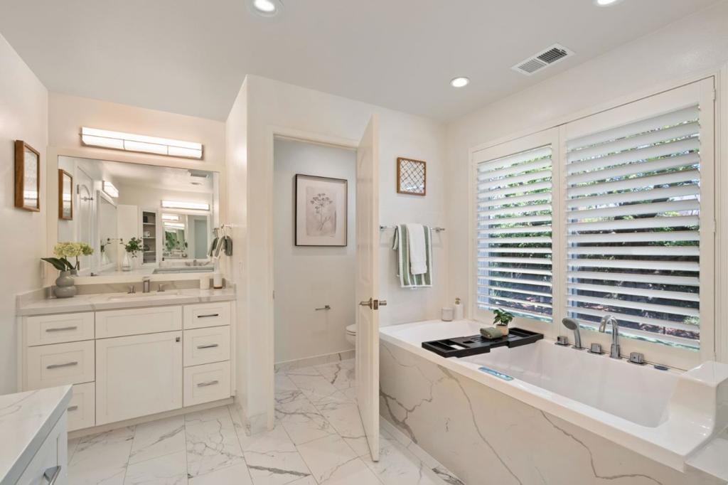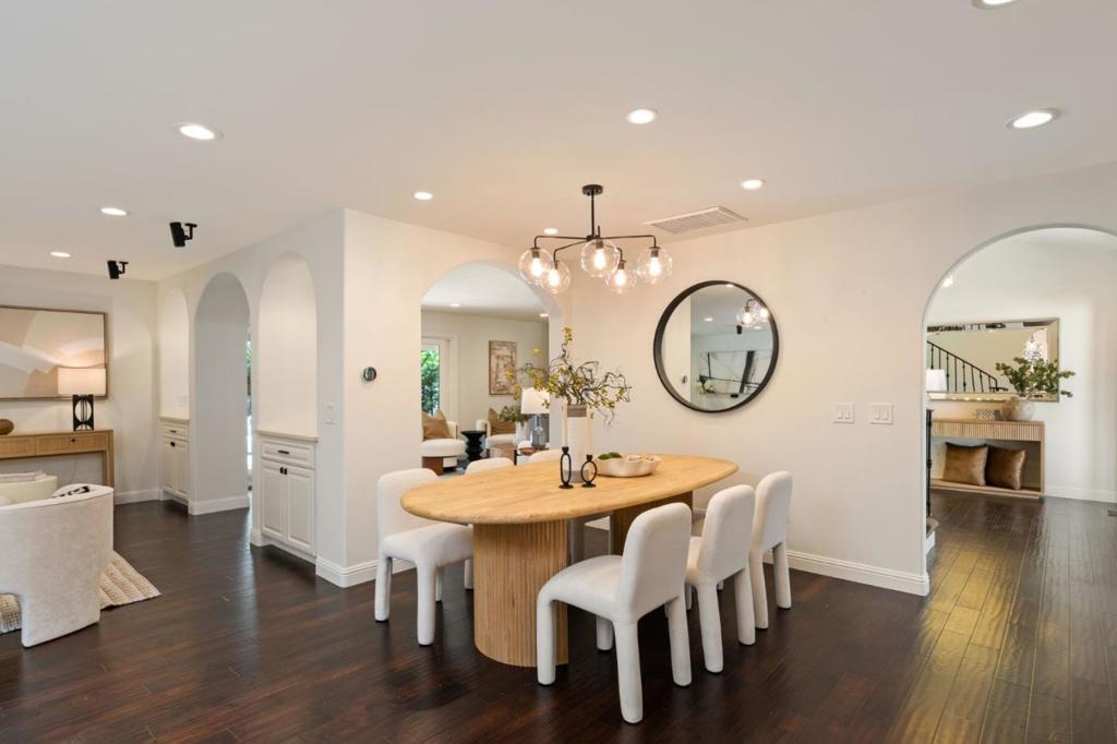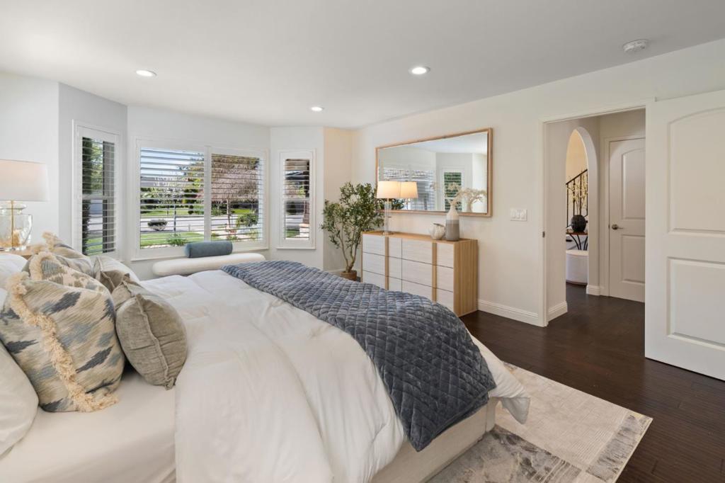 Stunning South Willow Glen custom home, meticulously rebuilt in 2018 with premium materials, designed for indoor-outdoor living. Grand entry with a dramatic staircase opens to an impressive foyer where a statement chandelier sets an elegant tone. Great room with skylight flows into the chefs kitchen with quartz countertops, custom cabinetry, Thermador appliances, and walk-in pantry. An oversized island with wine fridge overlooks the dining area and family room, perfect for everyday living and entertaining. A separate living room adds flexibility and elegance. Designed with versatility, the home features a rare dual primary layout with 2 spa-inspired suites, each appointed with rain showers, dual vanities, Hansgrohe fixtures. The large main-level suite offers a soaking tub and walk-in closet. The upstairs retreat offers his-and-hers closets & serene treetop views. Owned solar, EV ready, fiber internet, dual climate control, separate water heaters, water softener, updated electrical, plumbing, & HVAC, 50-yr roof, epoxy garage. The private backyard is thoughtfully designed with custom fire pit island, outdoor kitchen, water fountain, TV, Bose sound system, fruit trees. Minutes to DT Willow Glen, parks, Schallenberger Elementary, Hacienda Magnet School, & Oakridge Mall with 99 Ranch.