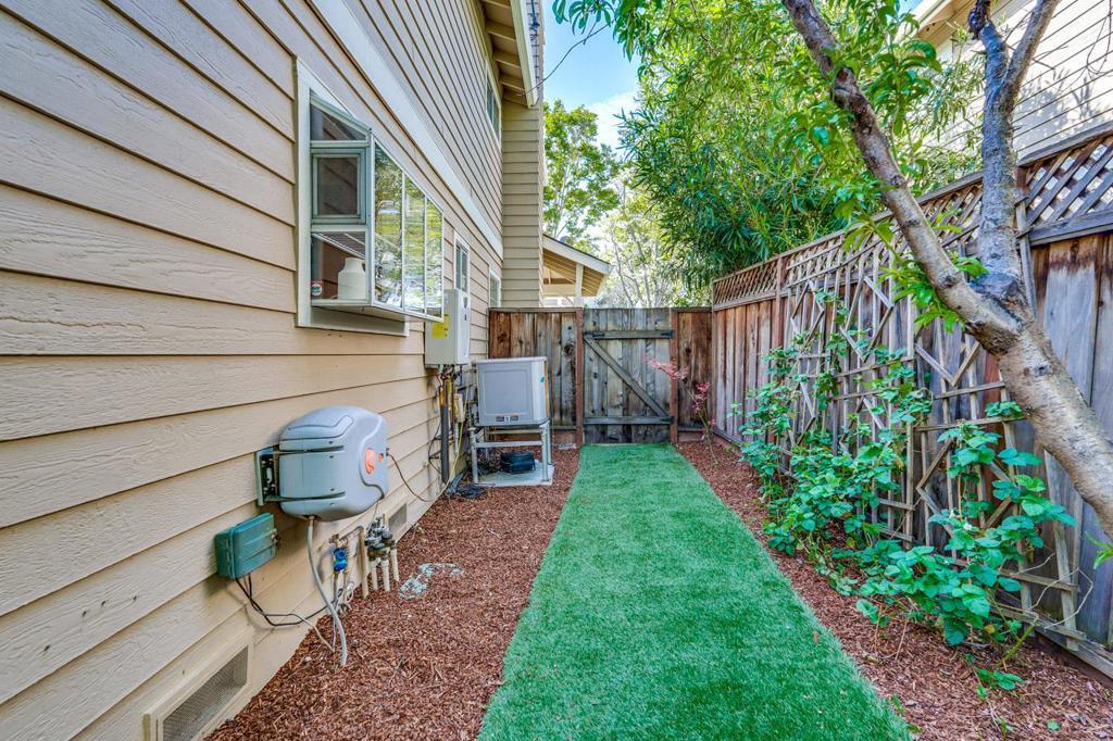 Ideally located near Google, Costco, and major commute routes, this beautifully updated 3-bedroom, 2.5-bath townhome offers 1,606 sq.ft. of bright, thoughtfully designed living space with enhanced privacy. The home features rich mahogany hardwood floors, brand new carpet, and smart LED recessed lighting with upgraded switches throughout. The inviting living room includes a fireplace, while the kitchen is equipped with elegant stone countertops, counter seating, and a rare dual-fuel range with gas cooktop and electric oven. The spacious primary suite offers a large walk-in closet and a spa-inspired bath with dual vanities and an oversized shower. Enjoy a rare wraparound yard with bluestone, synthetic turf, and a powered patio coverperfect for relaxing or entertaining. Only one shared wall at the garage enhances privacy. Additional features include remote-controlled blinds, skylight, tankless water heater, central AC & heating, in-unit laundry, and 220V EV charging outlet. Includes 1-car garage plus 1 assigned parking. Served by Monta Loma Elementary, Crittenden Middle, Los Altos High, and close to shopping, dining, parks, and major commute routes.