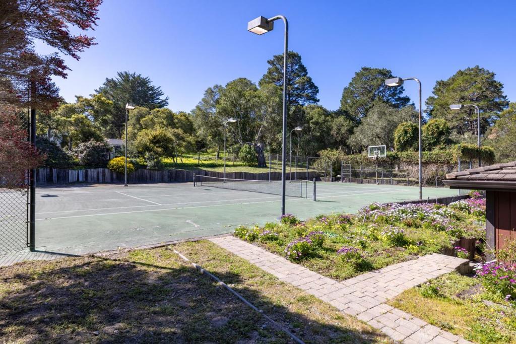Architectural Mid-Century Retreat. Built in 1976 from clear, knotless redwood, this home showcases warmth and craftsmanship. Set on 1.15 acres in one of Monterey's most desirable and discreet neighborhoods, this 3,562 sq. ft. residence features expansive open-concept living and dining areas with stunning natural light. A grand foyer and striking central fireplace create an impressive space for both everyday living and entertaining. The generously sized primary suite includes a private sitting room, fireplace, two walk-in closets, and a jetted bathtub. Three additional bedrooms and two full bathrooms provide ample space for family and guests, and a large bonus room with separate entrance offers flexibility for remote work, home gym or other creative uses. Thoughtfully designed outdoor living - large patio with pizza oven, grill and bar area, a private lighted tennis court and basketball hoop, fruit trees and vegetable garden with ideal Monterey sun and climate exposure. Additional features of this property include wine cellar, laundry room, a three-car garage, and unique driveway access to the backyard on both sides of the house. Within minutes to town, golf, and airport. This truly is a special property. A home designed for gathering, celebration, and creating lifelong memories.