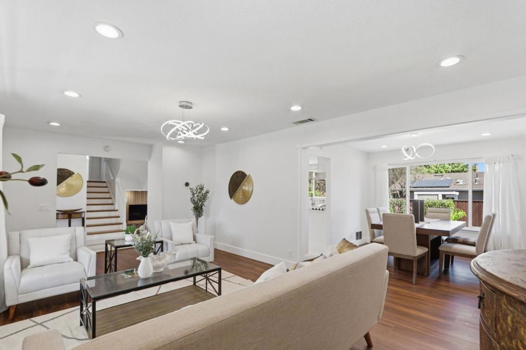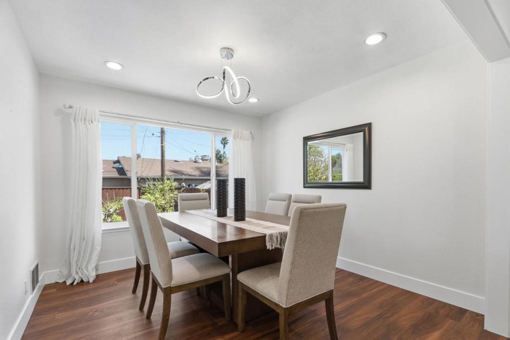 Beautifully updated 3-bedroom, 2.5-bath home in the convenient and sought-after Santa Teresa neighborhood of South San Jose. This home offers approx. 1,830 sq ft of well-designed living space with great separation of public and private areas. The main level features a bright formal living and dining room with remodeled flooring and recessed lighting. The updated kitchen is light & bright, creating a welcoming space with upgraded appliances and stylish finishes. All three bedrooms are upstairs, including a primary suite with updated bath and remodeled hall bath. The lower level offers a cozy family room that opens to a spacious backyard with paver hardscape, perfect for entertaining and low-maintenance outdoor living. Additional highlights include an attached 2-car garage, updated flooring throughout, and modernized baths and kitchen. Convenient location close to Westfield Oakridge, shopping, dining, parks, and commute routes in desirable 95123.