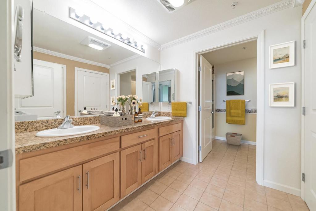 This elegantly updated condo, conveniently located near the freeway & offering FREE Shuttle service to Caltrain, BART, or MUNI, makes this a commuter's dream! An open concept living/dining with mountain views, abundant lighting, a balcony with views, and a breakfast bar. The bedroom comes with his-and-hers closets & a very spacious bathroom with a granite countertop and dual sinks. This unit comes with an in-unit washer and dryer, stainless-steel kitchen appliances, and plenty of upgrades, including crown molding throughout. This unit comes with one (1) deeded underground parking space. There is a shared gym on the 1st-floor parking space for community use. There are walking paths through the park in the front and back of the community. 24/7 secured entry, elevator for easy access, gym, trails, BBQ area w/VIEWS of the SF BAY are just some of the perks while living at Candlestick Point!