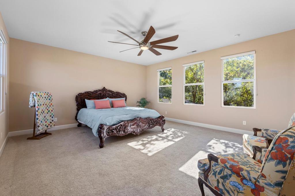 This Eagle Ridge home has been thoughtfully designed for both comfort and privacy, offering space, elegance, and versatility throughout. The main level features two spacious bedrooms, each with its own full bathroom ideal for guests or family. One bathroom is equipped with a SafeStep therapeutic walk-in jacuzzi tub and shower, offering both luxury and accessibility. The gourmet kitchen is fully appointed with premium Viking appliances Cabinets have slide-outs for easy access. Entertain around the large center island. Butler's pantry complete with wine refrigerator. At the heart of the home, a charming atrium with trees and brick pavers creates a serene indoor-outdoor experience. Upstairs, accessibility meets convenience with a Hawle chairlift, making this home ideal for multigenerational living. Dedicated office area. Two generously sized bedrooms share a Jack & Jill bathroom. The luxurious primary suite boasts breathtaking views, along with a spa-like bathroom with an oversized two-person shower, a large soaking tubàand an expansive his-and-hers walk-in closets. Three-car tandem garage with abundant storage. Park 2 extra cars next to driveway. Leased solar. This exceptional home blends thoughtful design, modern amenities, and tranquil living truly a rare opportunity.