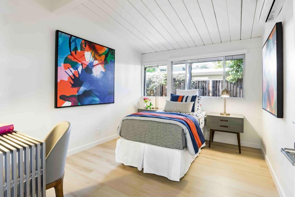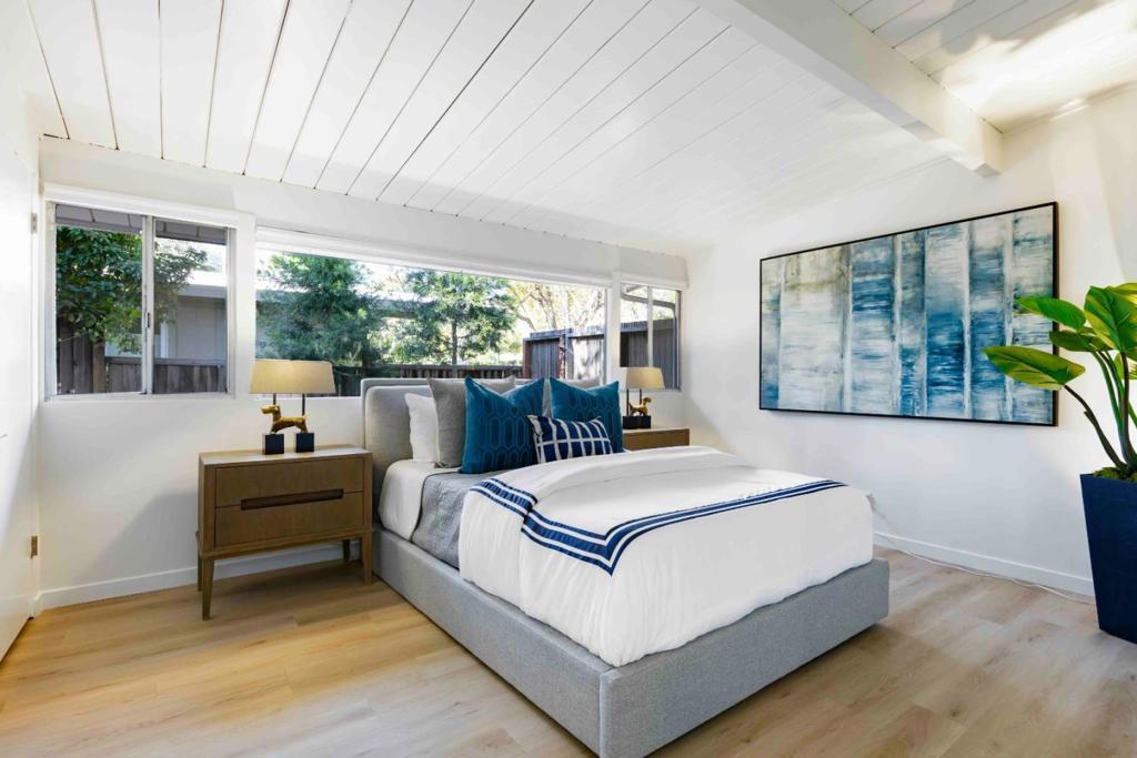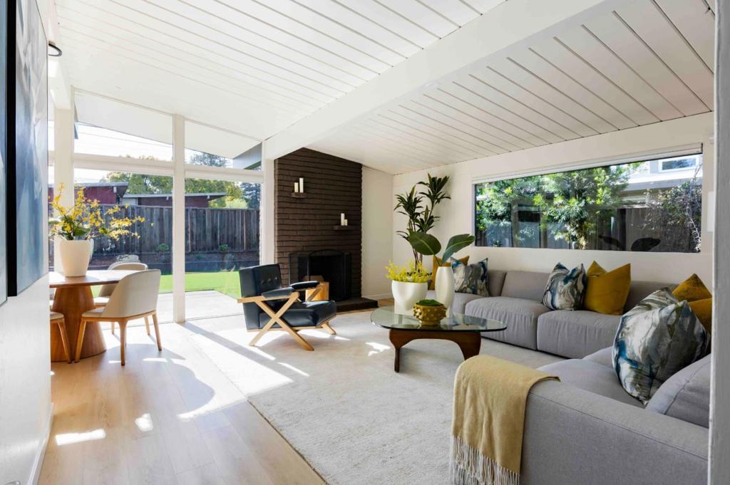 Beautifully remodeled and brimming with timeless appeal, this midcentury modern home seamlessly blends classic design elements with fresh, contemporary interiors. Vaulted paneled ceilings, expansive walls of glass, and sleek flooring create a light-filled ambiance throughout, while the open floorplan connects a welcoming living room with fireplace to the dining area and quartz-appointed kitchen, all complemented by four comfortable bedrooms. Mini split HVAC in each bedroom and the living room ensures personalized comfort, and a covered carport with EV charger adds everyday convenience. The spacious backyard invites outdoor enjoyment, all in an outstanding location near numerous parks, just a short drive to premier shopping and dining, with easy access to Caltrain and Highway 101, and served by top-rated Briones Elementary, Fletcher Middle, and Gunn High (buyer to verify eligibility).