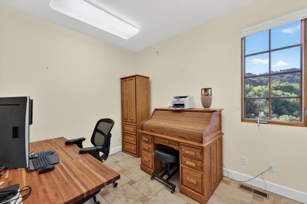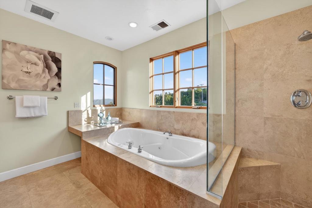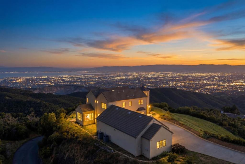 This French Country inspired residence offers rare serenity just minutes from top Cupertino schools, shopping, and major employers. A scenic 20 minute drive from Silicon Valley brings you to a private hilltop retreat nestled on ~10 acres along an exclusive road. Enjoy breathtaking ~270° panoramic views of the San Francisco Bay and the Santa Clara Valley - lush green hills by day, shimmering city lights by night, and a stunning above the clouds vantage when valley fog settles below. The 4bd/3ba home features a light-filled floor plan, main-level bed/bath, and an upstairs primary suite with a walk-in closet and spa-like bath. The kitchen offers premium stainless appliances, abudant cabinetry and countertop space. The main level includes a private office area and a sunroom perfect for a reading lounge or inspired workspace . The dining area opens up to the backyard which is ideal for entertaining. An oversized 3-car garage with abundant storage and leased solar complete the offering. Near acclaimed wineries including Ridge Vineyards and over 22K acres of hiking & 10K acres of biking trails, this home offers a perfect blend of luxury and an active lifestyle. Close to Cupertino schools and major employers. Experience refined living where the journey itself becomes part of the reward.
