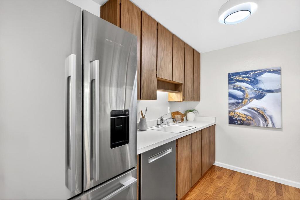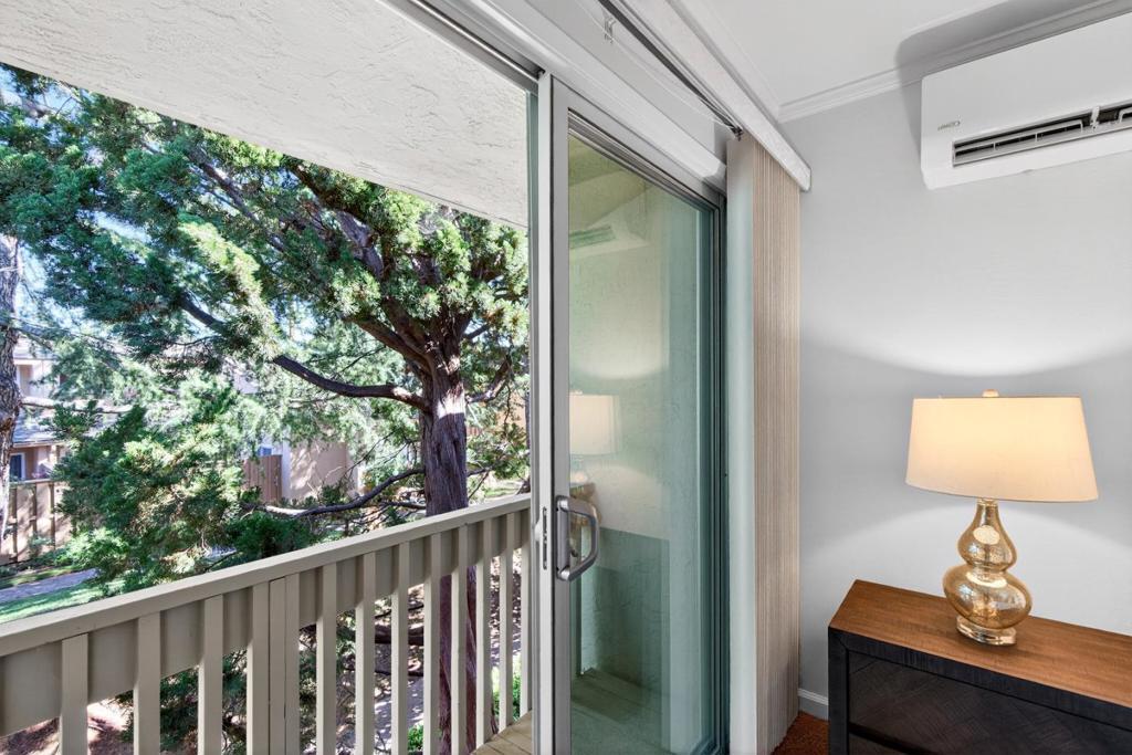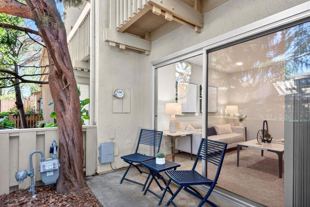 Tranquil townhome in a peaceful community with views of the West Foothills, this charming home offers the perfect blend of tranquility and convenience. Just a short stroll to Top-Rated schools, Ortega Park and the famous Serra Park, with shopping centers nearby including Hollenbeck Plaza, De Anza Square and Homestead Crossing. Inside, tongue-and-groove oak hardwood flooring leads you through a well-designed floor plan featuring recessed lighting, dual-pane windows, a skylight, and a cozy gas fireplace for chilly evenings. The kitchen is equipped with brand-name appliances, including a Fisher & Paykel refrigerator with ice maker and exterior water dispenser, a quiet Bosch dishwasher, Formica countertops, breakfast bar and abundant cabinetry. Both bedrooms are bright and spacious, each with its own generous closet. Additional highlights include a private carport with storage shed, washer and dryer in the laundry closet, attic, a large patio with a mature Meyer lemon tree, a sunny balcony and access to a relaxing community pool and spa. Ideally located near Silicon Valleys top tech hubs including LinkedIn, Apple, and Meta, with easy access to Highways 85 and 280, plus Caltrain for an easy commute. Do not miss your chance to own this tranquil gem. It will go FAST!