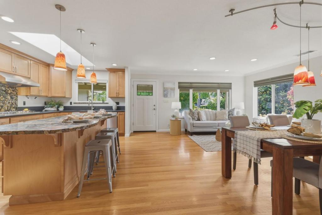 Experience the pinnacle of modern, low-maintenance living in the highly coveted Santa Teresa Sakamoto neighborhood. This single-family home has been meticulously reimagined with high-end finishes and smart-home technology. The heart of the home is an open-concept chefs kitchen and living area, anchored by a granite slab island, professional-grade stainless steel appliances including dual ovens, a dedicated wine fridge, and a sun-drenched skylight. For movie nights, the separate family room transforms into a private cinema with a remote-powered projector screen that elegantly retracts into the ceiling. Retreat to the primary suite featuring dual closets and a spa-like updated bathroom with double sinks and a custom oversized shower. Every inch of the interior boasts fresh paint and modern recessed lighting. Sustainability meets convenience with an owned solar system, EV charger, and tankless water heater. The exterior is designed for effortless enjoyment with a fully paved driveway, walkway, and backyard no more weekend yard work! Perfectly positioned within walking distance to top-rated Sakamoto Elementary and Herman Intermediate, and just minutes from the hiking trails and golf at Santa Teresa County Park. This is the turnkey Silicon Valley lifestyle you have been waiting for.