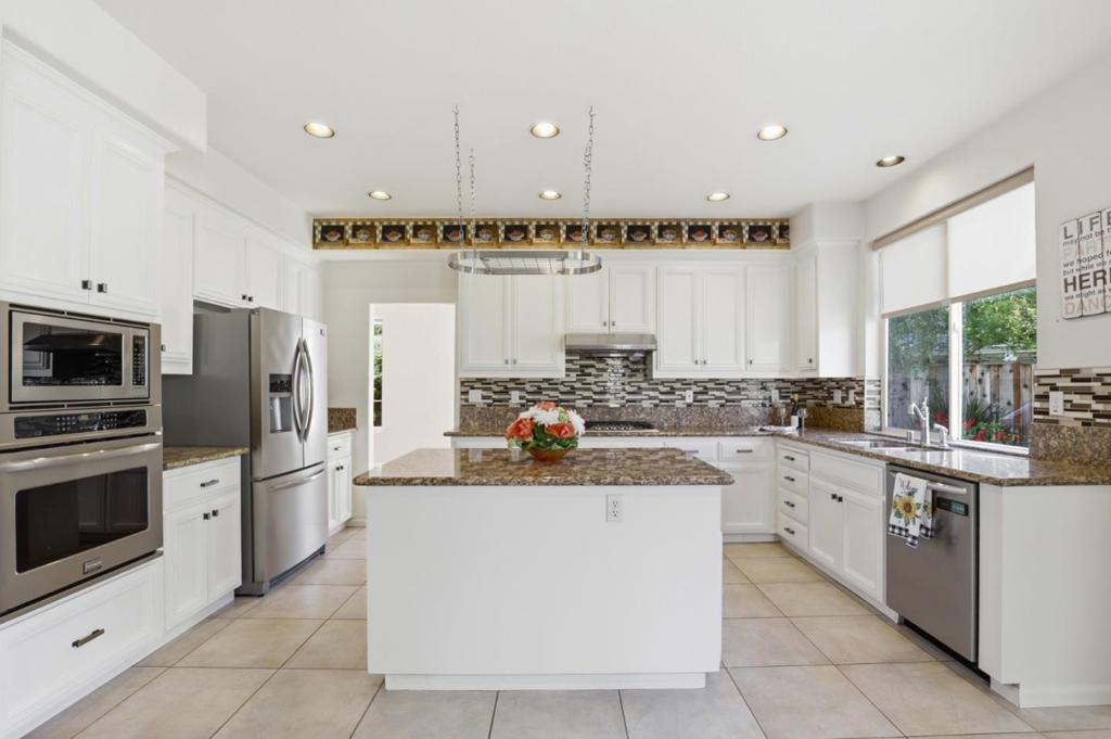 Nested in a seven- home cul-de-sac in desirable northwest Gilroy neighborhoods. This two-story Ventana home features 4 bedrooms, 3 full baths, huge family room w/ gas-blower fireplace. A 5th bedroom option in lieu of the oversized room is an easy change. Two walls & a doorway and you have perfect in law quarters! Updated kitchen features white cabinets, granite countertops, glass backsplash, five-burner gas stove, electric oven and a separate pantry. The living room has cathedral ceilings and a formal dining room. This three-car garage home comes with two refrigerators, separate laundry room with washer, dryer, and sink. There are four bedrooms including a primary suite with gas fireplace. Oversized primary bath has dual vanities and an updated expansive shower. Theres also an added linen closet and double-sided walk-in closet. Drought-resistant, professionally-designed front landscaping and a huge pie-shaped backyard with view of the hills. The backyard has an oversized patio, overhead arbor and a garden shed with skylights. No HOA, yet located three blocks from two neighborhood parks. Situated within the boundaries of Luigi Aprea Elementary School, Solorsano Middle School and Christopher High. Less than 10 minutes from downtown Gilroy & Outlets, offering easy commuter access.