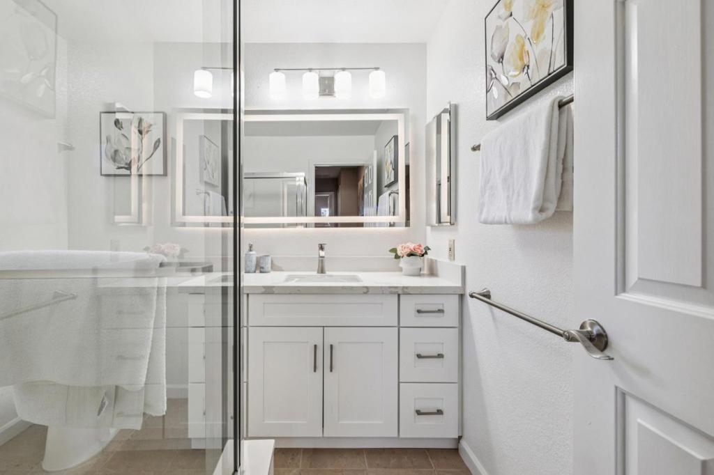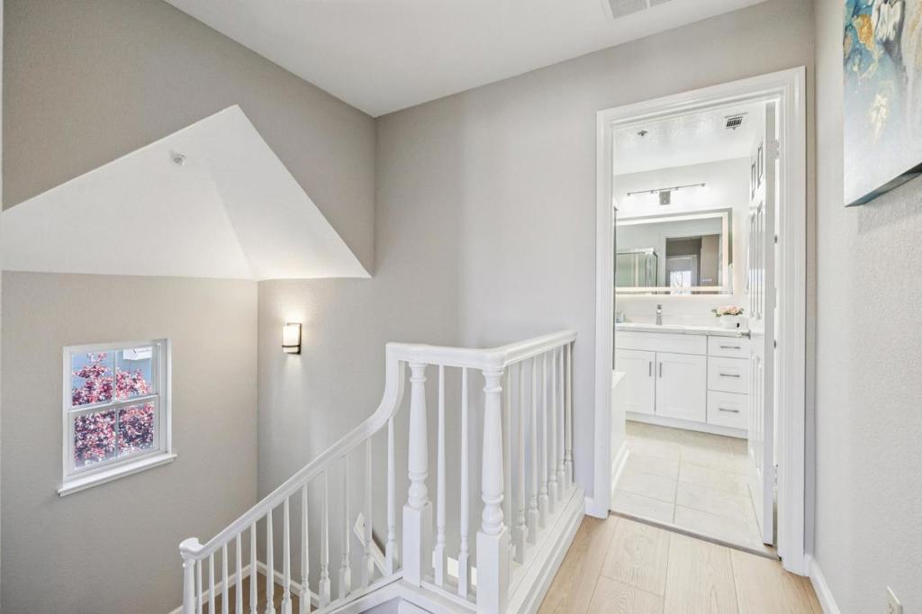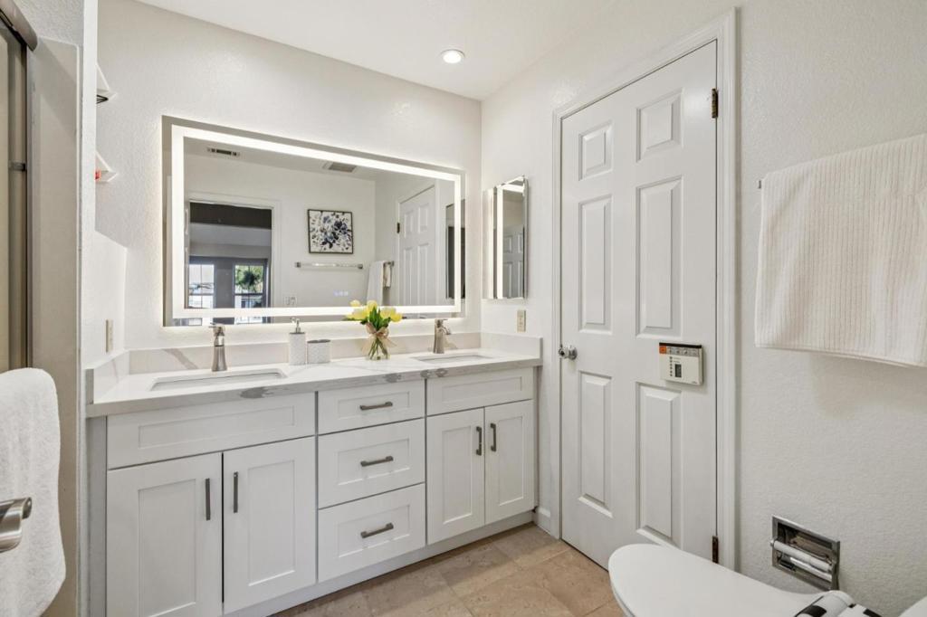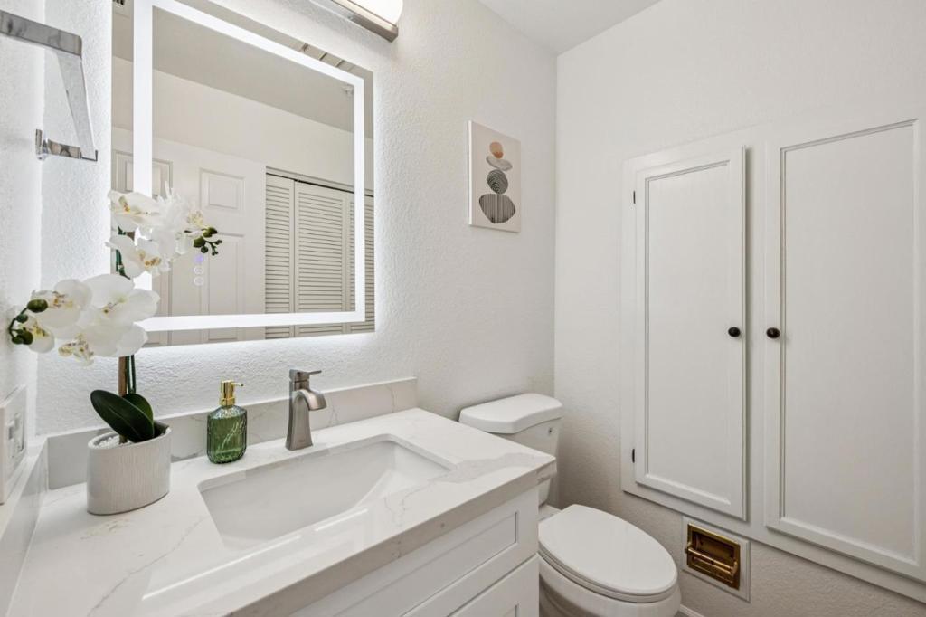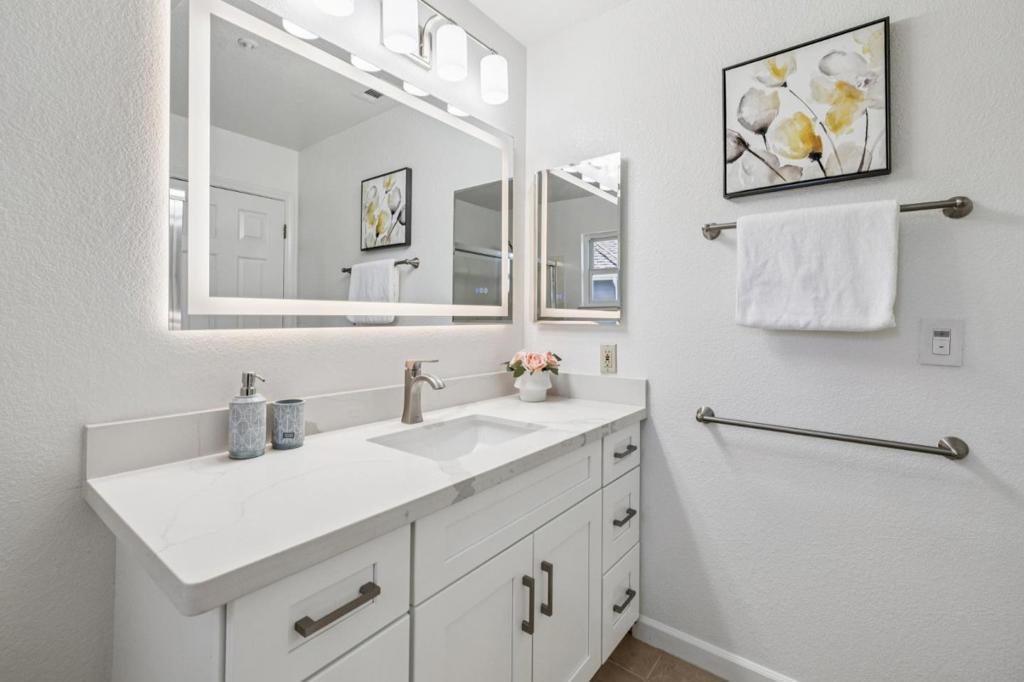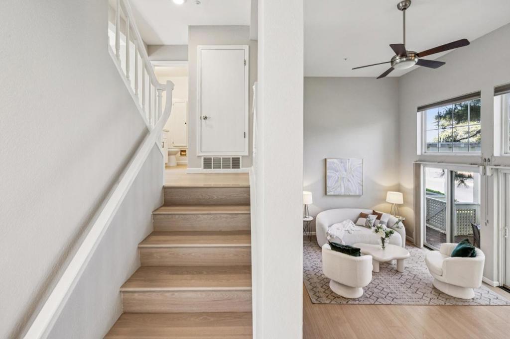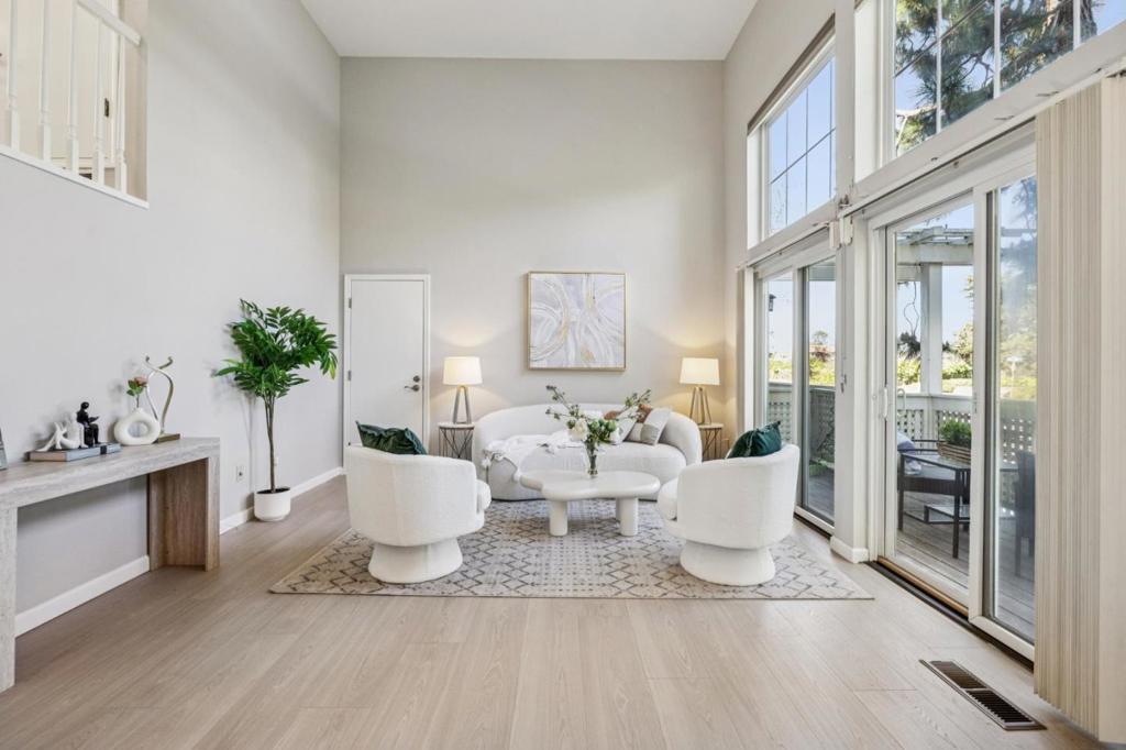 Stunning newly remodeled sunny and bright modern end unit home! Perfect location on a private cul-de-sac overlooking the Bay. Airy spacious living room with soaring ceiling and fireplace leads to rear deck with greenbelt view. Open kitchen with breakfast bar: granite countertops, newly painted cabinets, stainless steel appliances including gas range. Luxurious bathrooms: new quartz countertops and vanities, LED mirrors, stylish light. New elegant laminate floor, LED recess light throughout. Newly painted interior. Attached garage. Sought-after community surrounded by water with resort-like amenities: pool, playground, private community white beach on lagoon, boat accessibility. HOA covers building earthquake and fire insurance. Walk to Ranch 99&Edgewater Plaza, Bay Trail, Sea Cloud Park, top schools. Major employers nearby: Gilead, Visa, Sony, EA, Oracle. Quick access to Hwy 92&101.
