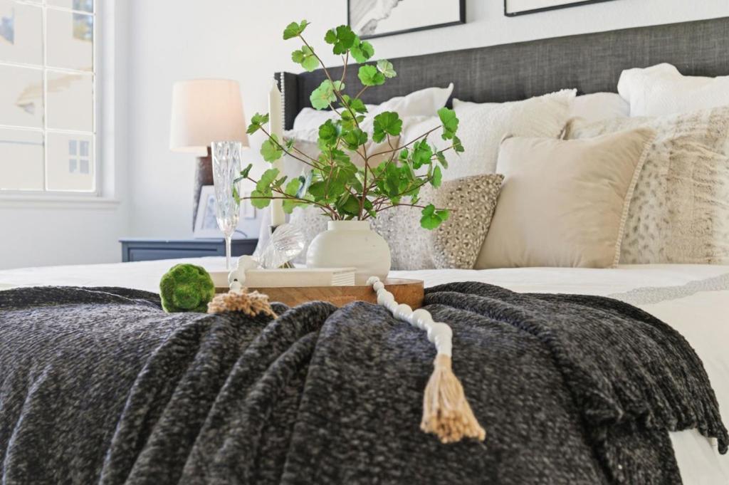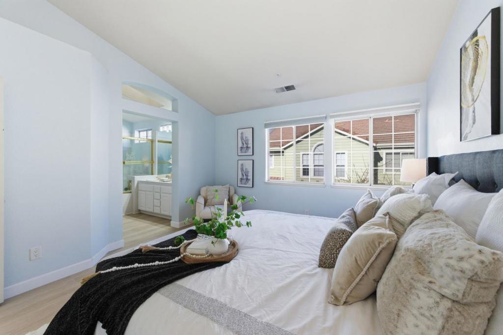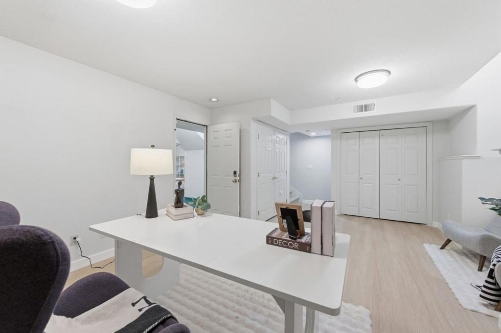 Discover exceptional space and modern comfort in this beautifully upgraded 3-bedroom, 2.5-bath townhouse offering an expansive 1,923 sq ft of living space, this home is truly move-in ready. The stunning gourmet kitchen, fully remodeled just two years ago, features quartz countertops, stainless steel appliances, custom cabinetry, and a charming breakfast nook. Two spacious front and back decks extend the living space and create inviting spots for relaxation or outdoor dining. Upstairs, all bedrooms showcase vaulted ceilings, large picture windows, and architectural ceiling nooks that enhance natural light and volume. The spacious primary suite includes a generous walk-in closet, dual vanities, and a tub/shower combo. An expansive ground-level den offers the perfect flexible space for a media room, home gym, office, or guest retreat. The well-maintained HOA provides ample guest parking, a tot gym, community pool, and spa, and covers water/sewer garbage and earthquake insurance. Ideally located in the heart of Sunnyvale tech corridor, just minutes from major employers such as Google, Apple, Amazon and Nvidia. Enjoy easy access to Highways 101 and 237, Caltrain, San Jose Airport, Tasman Light Rail, VTA bus lines, as well as nearby restaurants, parks, and shopping.