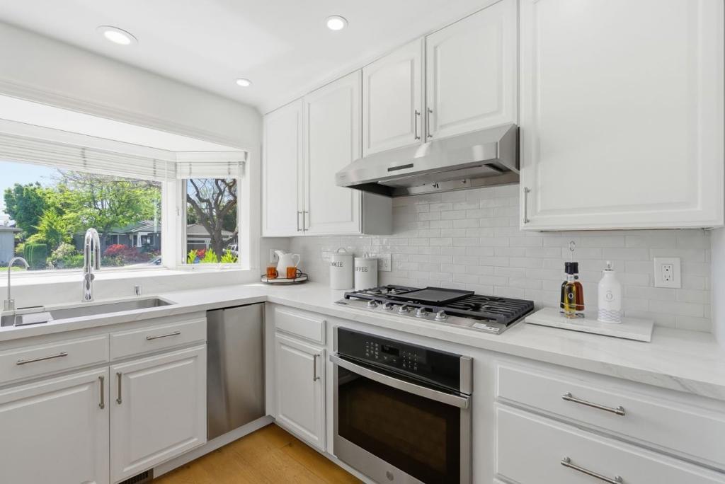 Beautiful home on a quiet street near Nvidia campus. Striking curb appeal. Welcoming entryway with serene sitting areas both inside and out, framed by views of elegant Japanese Maples. Generous floor plan. Large living room plus super-sized family room. A tastefully updated kitchen with premium Omega custom cabinetry serves as the heart of the home. Vaulted ceiling with skylights and wide sliding door to yard in the family room, which flows seamlessly onto an expansive deck. Natural light from skylights also in hallway, bathroom, and primary suite. Spacious bedrooms and both upgraded bathrooms for modern comfort. Wonderful primary suite with walk-in closet and lively backyard view. Complete with an attached two-car garage and oversized driveway. Inviting and private backyard with deck, trellis, sheds and lawn. Low Santa Clara utilities. Fantastic location within walking distance to the San Tomas Aquino Creek Trail, and just minutes from Costco, Central Park Library, major tech hubs, and easy expressway access.