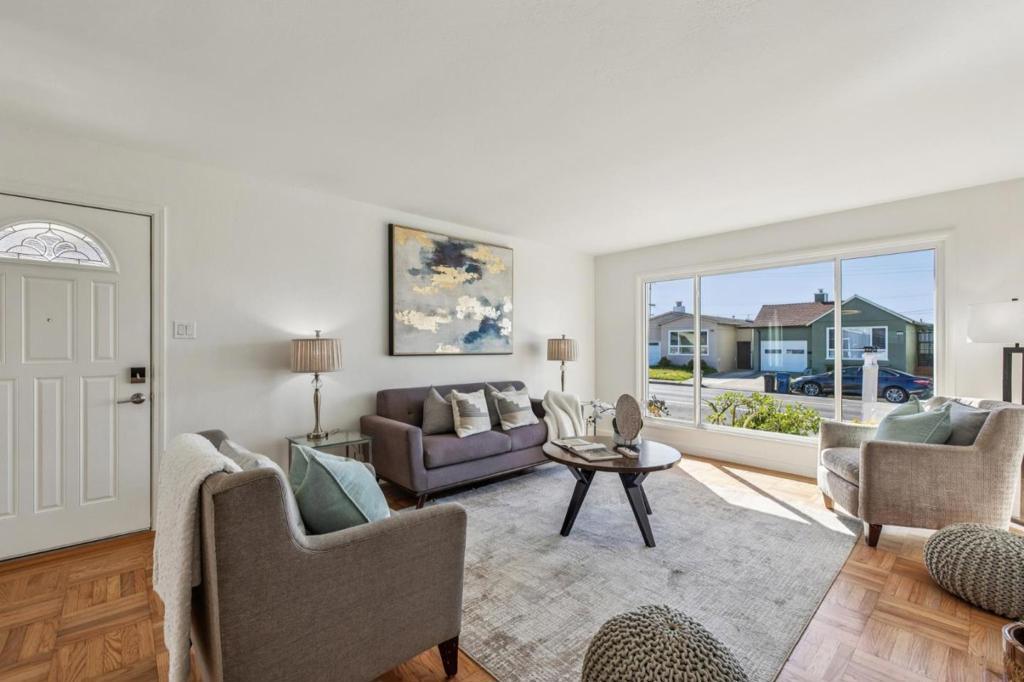 Enjoy this beautifully updated 3-bedroom, 2-bath single-story detached home nestled in the desirable Westlake Heights neighborhood minutes from Mussel Rock Park, and scenic coastal trails overlooking the Pacific Ocean. Freshly painted inside and out with refreshed hardwood floors, the 1,150 sq ft layout offers a spacious living room with a wood-burning fireplace, a dedicated dining area, and a functional kitchen designed for comfortable everyday living and entertainment. The private bedroom wing includes three well-sized bedrooms and two full baths, including a primary suite. Originally designed as a tandem 2-car garage, the space is currently configured as 1-car parking plus a flexible bonus area for home office, gym, or storage. Low-maintenance front and rear yards provide easy outdoor enjoyment. A great opportunity to enjoy coastal access with convenient commuting to San Francisco and the South Bay via Highway 280.