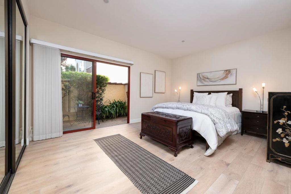 Finally, a home that does not ask you to compromise. Designed to live like a single-family home, this beautifully remodeled, first-floor corner residence offers space, privacy, and seamless indoor-outdoor living without the added upkeep. With approximately 1,002 sq ft of private outdoor space, multiple sliding glass doors create a seamless connection between indoor and outdoor living. Located just steps from Central Park and vibrant downtown San Mateo, you will enjoy a truly walkable lifestyle with coffee, dining, fitness, and everyday essentials close at hand, along with easy walk or bike access to Caltrain. Living here gives you time back, with nearby employers and the ability to leave the car behind. Inside, the home features wide-plank engineered oak floors, a spacious dine-in kitchen with island and bar seating, stainless steel appliances, custom window coverings, and a cozy fireplace anchoring the living space. The primary suite offers generous closets and a well-appointed bath, while the second bedroom is ideal for guests or a home office. In-unit laundry, two-car side-by-side parking, and a private storage room add to everyday convenience. Elevator access just outside your door and direct gated access from your patio complete the experience. Homes like this are rare.