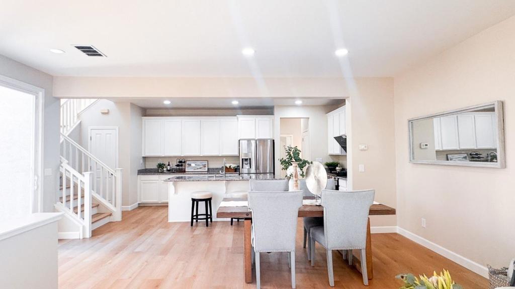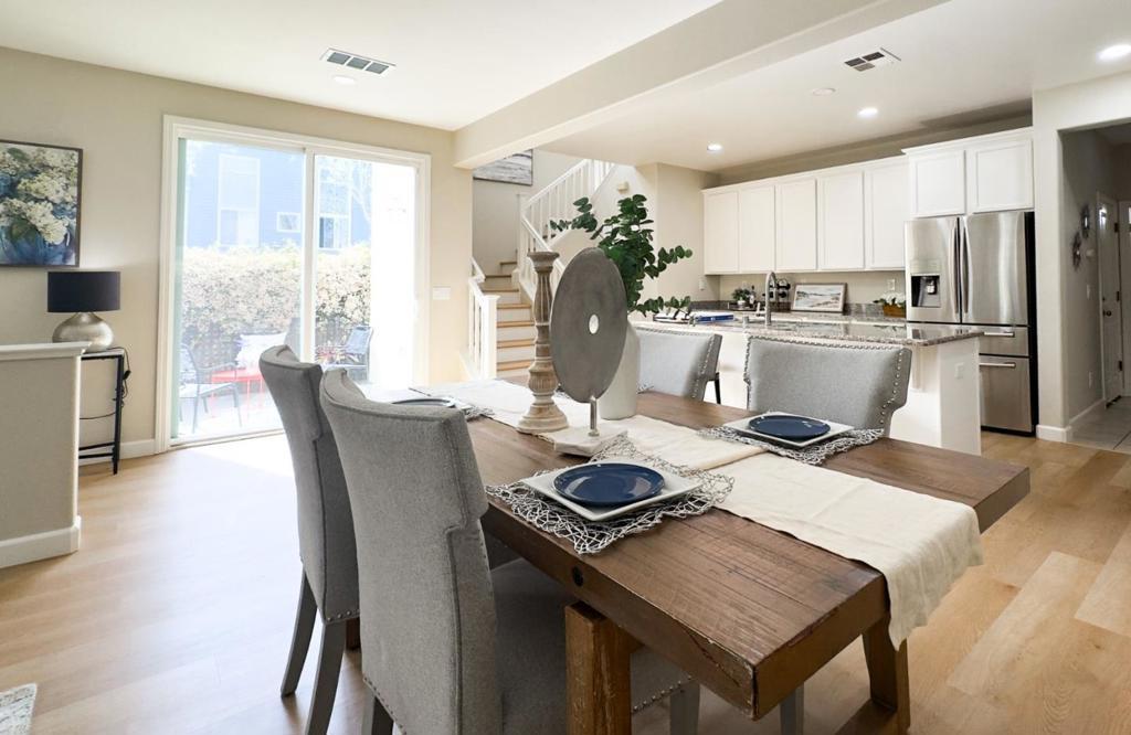 Welcome to 682 N 9th Street, a light and bright home in the desirable Gardens at 9thvStreet community, where convenience meets quiet neighborhood charm. Inside, new wide plank floors throughout and paint create a bright, welcoming atmosphere. The kitchen features granite countertops, gas range, center island, and large walk-in pantry, ideal for daily living and entertaining. The living room opens to a quaint private courtyard through a sliding glass door. Upstairs, the primary suite offers a large walk-in closet, dual sink vanity, deep soaking tub, and separate walk-in shower. Three additional bedrooms and a dual-sink hall bath complete the upper level, offering comfortable space for family, guests, or home office. Additional features include upstairs laundry, a two-car finished garage, downstairs half bath, and side yard. Situated just minutes from Japan town, dining, shopping, parks, and major commute routes, this home delivers unbeatable access to all that San Jose has to offer.