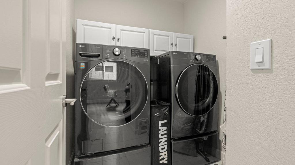 • AppliancesElectric Cooktop, Disposal, Microwave, Vented Exhaust Fan, Dryer, Washer