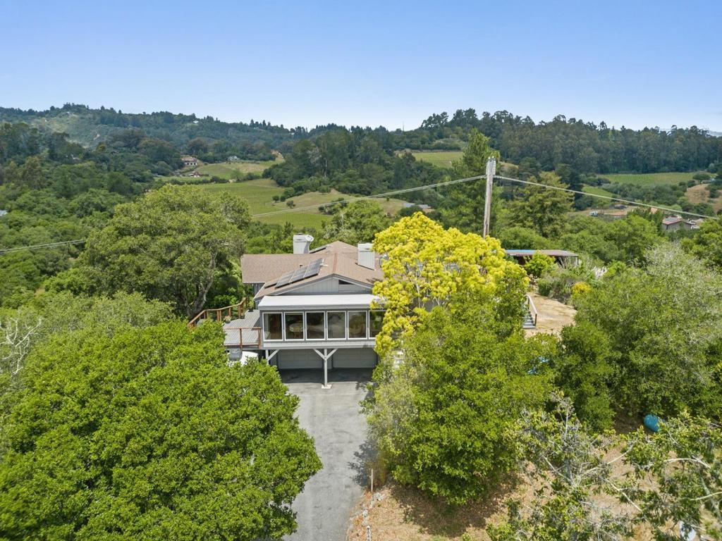 One of the best values in Aptos privacy, acreage, and sweeping views at a price point that's increasingly hard to find. Set on 1.36 acres, this nearly 3,000 sq ft home offers the space and serenity buyers are searching for but rarely find this close to town. Sunlight pours through the home, highlighting vaulted open-beam ceilings and creating a warm, inviting atmosphere anchored by a cozy fireplace. The kitchen is designed to bring people together, featuring granite countertops, an oversized island, built-in appliances, and a wine refrigeratorperfect for both everyday living and effortless entertaining. With four bedrooms and three full baths, the layout offers flexibility for guests, remote work, or multigenerational living. The primary suite is a peaceful retreat with a walk-in closet and tranquil views. Step outside to expansive decks where you can take in breathtaking sunsets, entertain with ease, or unwind in the hot tub under the stars. The usable acreage provides space for gardening, animals, or additional parking for RVs, boats, and guestsan uncommon find in Aptos. A full-house Generac generator adds comfort and peace of mind.